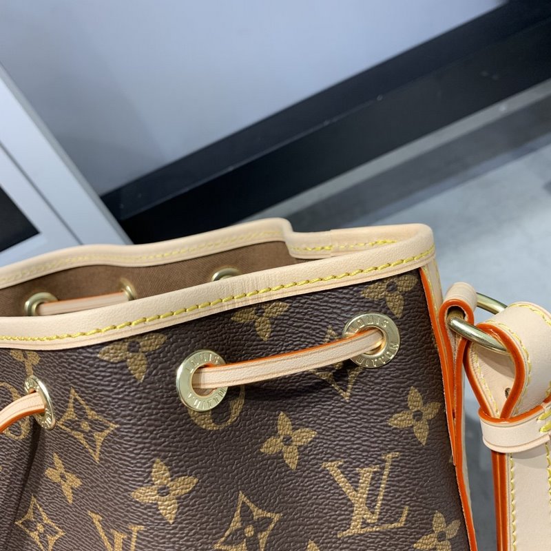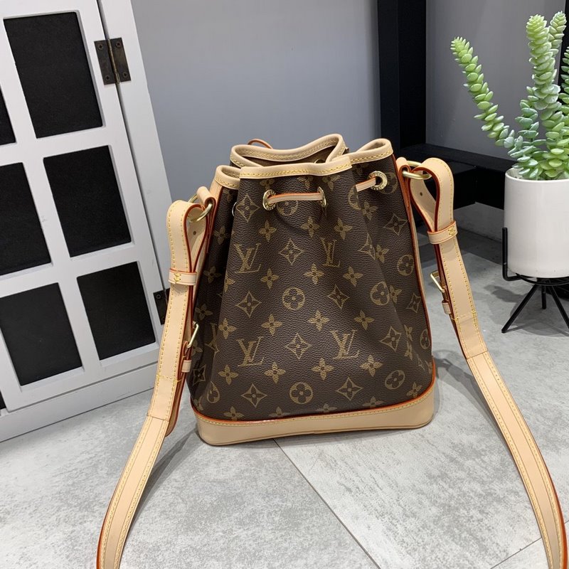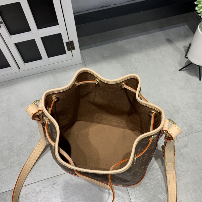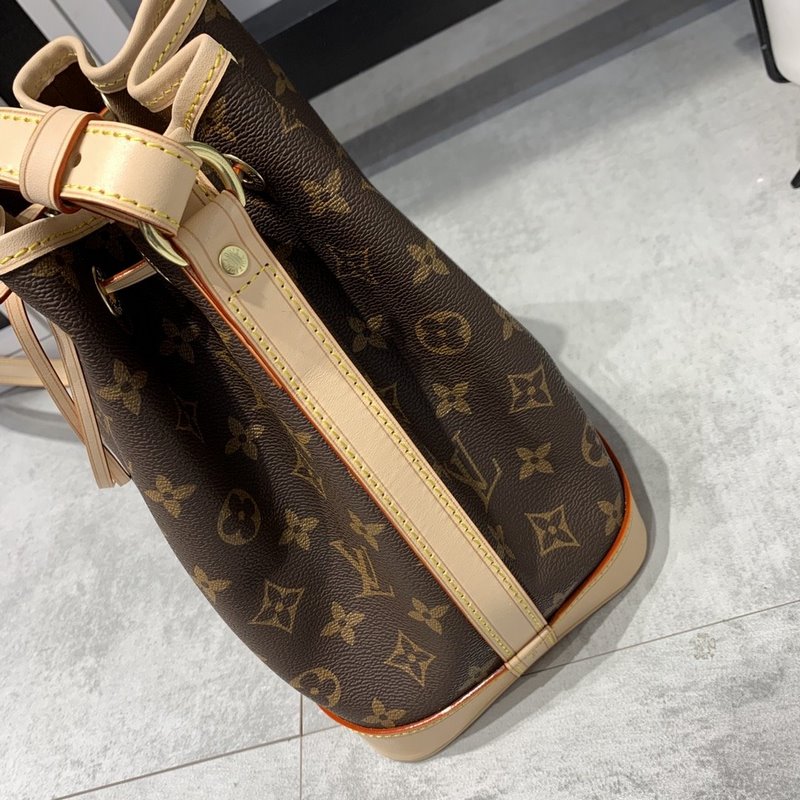 LV NOE ~BB M40817 버킷백 1932년에 디자인된 클래식한 노에 버킷백이 귀여운 미니 버전으로 재해석되었습니다. 가방의 바닥은 가죽으로 보강되어 있으며 가방의 높이는 9인치 미만입니다. 모노그램 캔버스로 제작된 이 노에 버킷백은 오리지널 시그니처 가죽 끈과 캐주얼한 크로스 바디 스타일을 위한 확장된 어깨 끈이 특징입니다. 크기: 24 x 22 x 15 항목 번호: SG96181160 RYX9618920 GS9618680