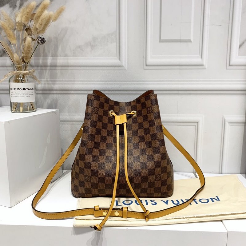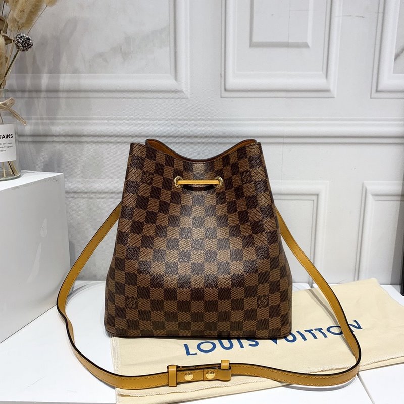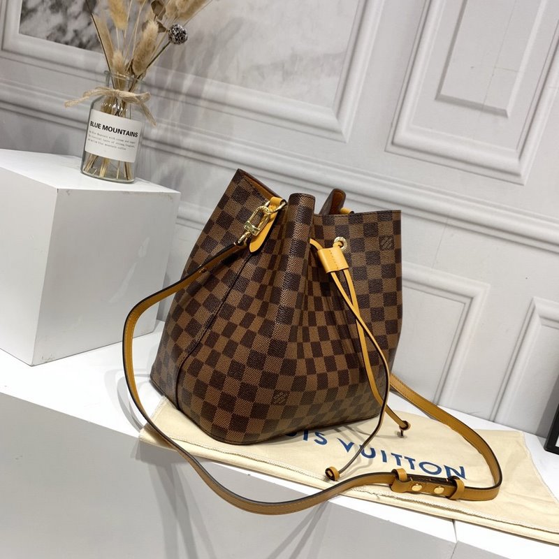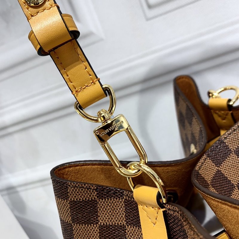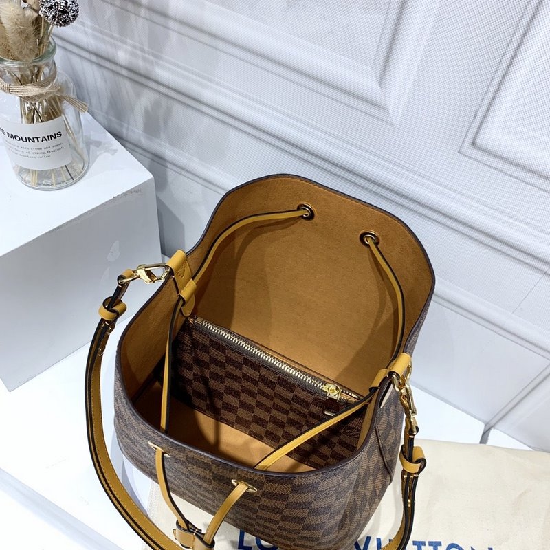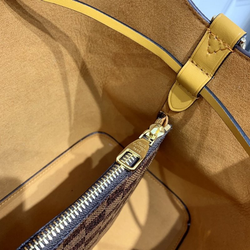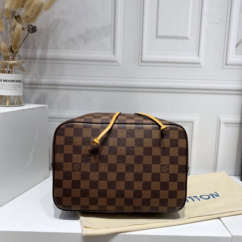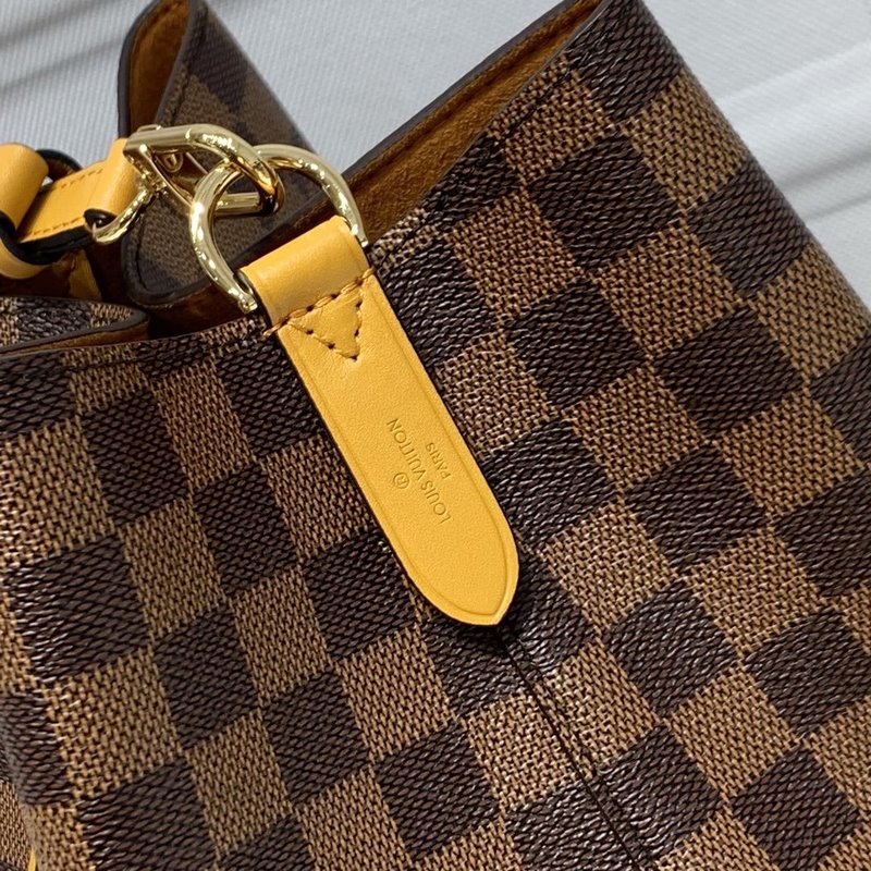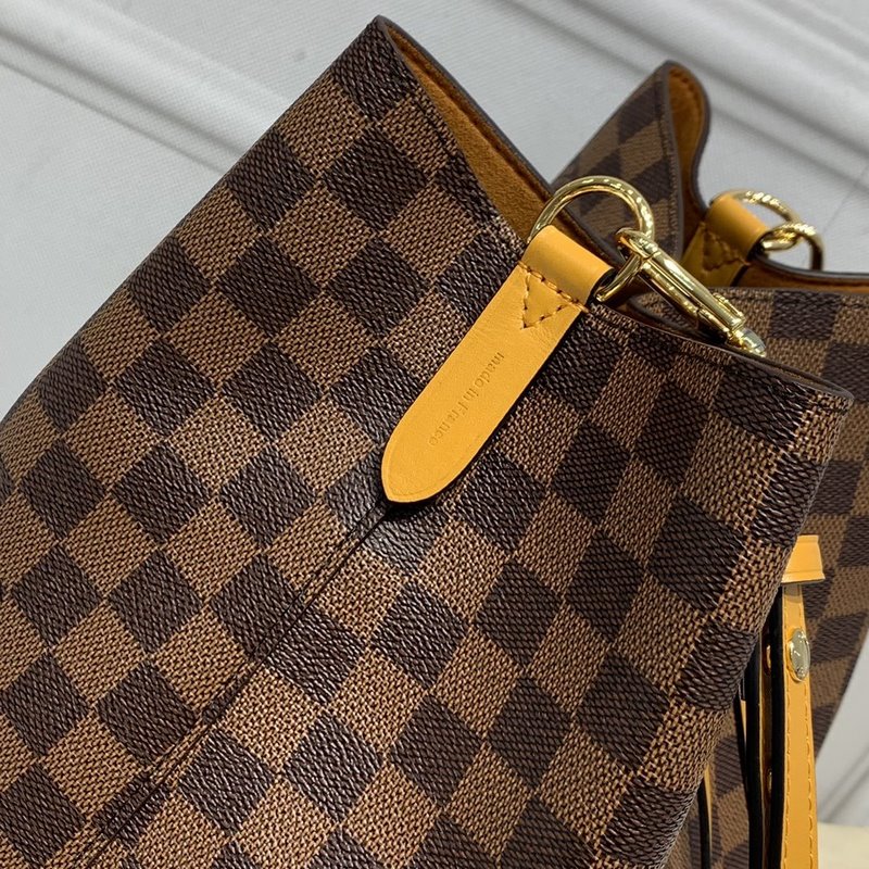 LV 다미에 에벤 버킷 백 코팅 캔버스 부드러운 소가죽 트림 극세사 안