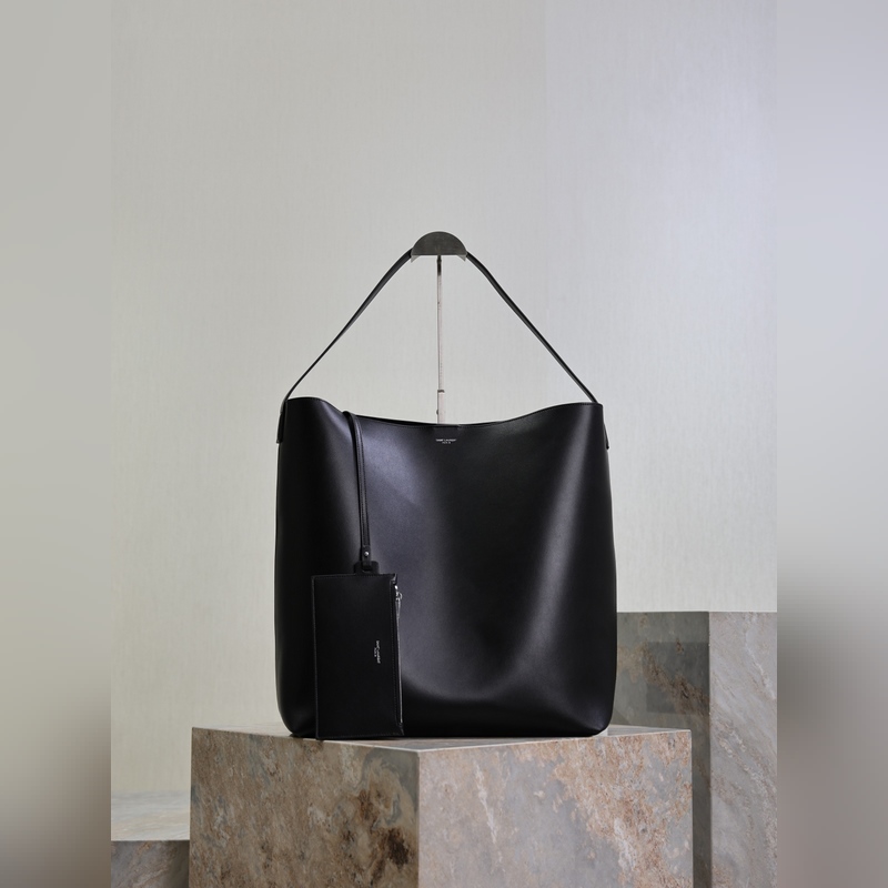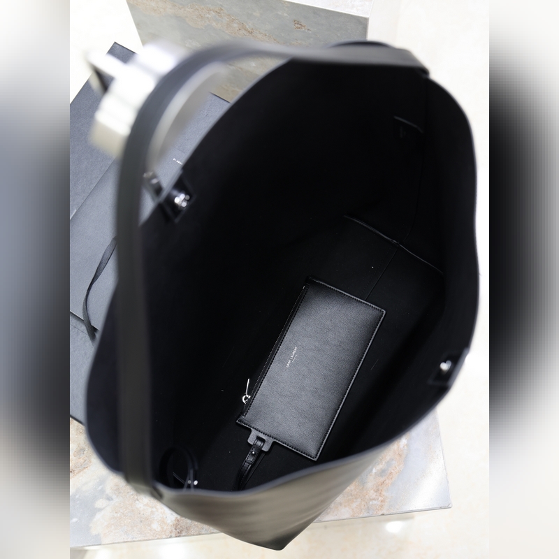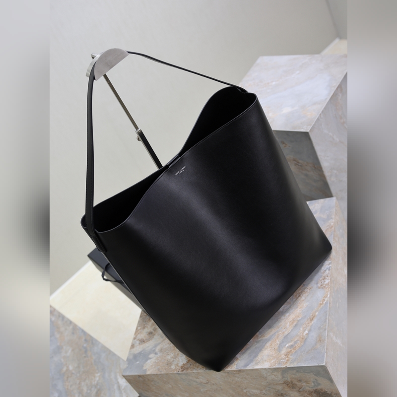 블랙 볼드 호보 백 쇼핑백 매우 미니멀한 시크한 스타일의 시리즈로 남아프리카산 소가죽을 수입하여 제작되었습니다. 내부에는 분리 가능한 핸드백이 포함되어 있으며 용량이 크면서도 가벼운 것이 특징입니다. 클래식한 브랜드 로고가 은색으로 각인되어 있어 절제된 고급스러움을 선사합니다! 사이즈: 37 x 42 x 16cm 모델: 819623