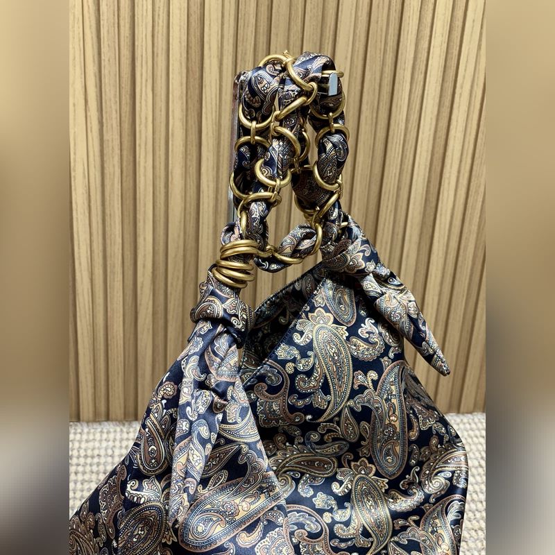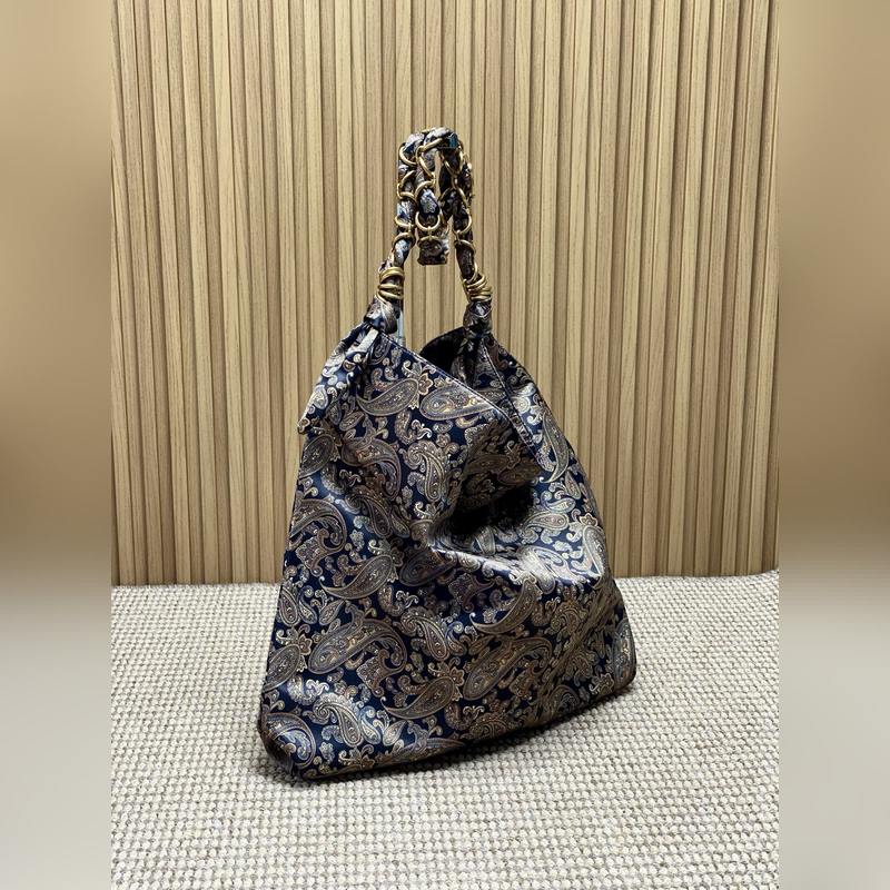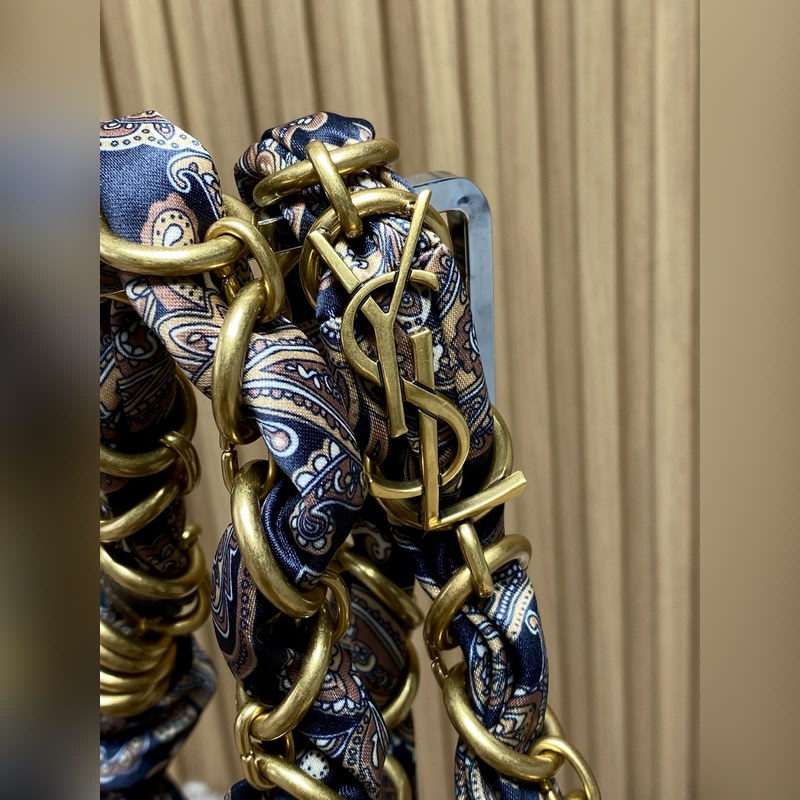 YSL 신상 실크 천장 직조 쇼핑백 직조된 CASSANDRE 주얼리 체인으로 천을 감싼 디자인으로 초현대적이고 우아하며 자유분방하면서도 캐주얼한 느낌. 가벼운 쇼핑백을 선호하는 이들에게 안성맞춤. 사이즈: 42 X 550 X 1cm 모델 번호: 8347550