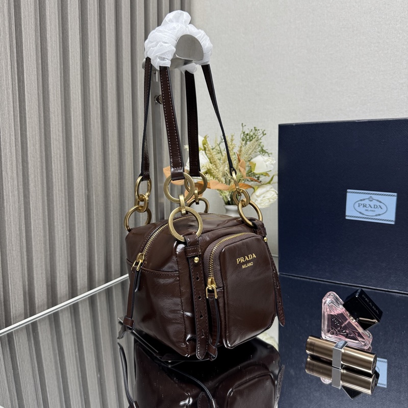 [프리미엄 오리지널] (신상 오일왁스 가죽) 소형 빈티지 가죽 핸드백 1BB137 원산지 오일왁스 가죽 신상 정사각형 핸드백은 복고 감성의 부드러운 가죽으로 제작되었습니다. 복고풍 금속 하드웨어와 클래식한 지퍼 포켓이 빈티지 매력을 더합니다. 가죽 핸들 길이: 25cm 사이즈: 가로 14.5 x 높이 14 x 너비 13.5 cm