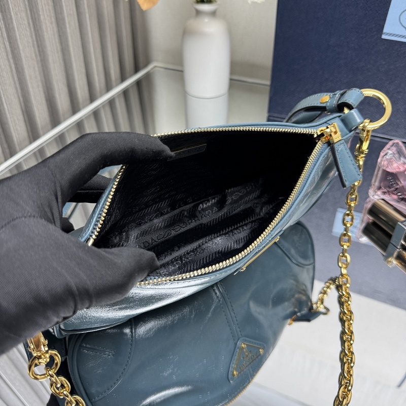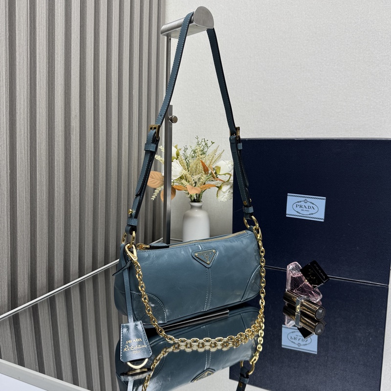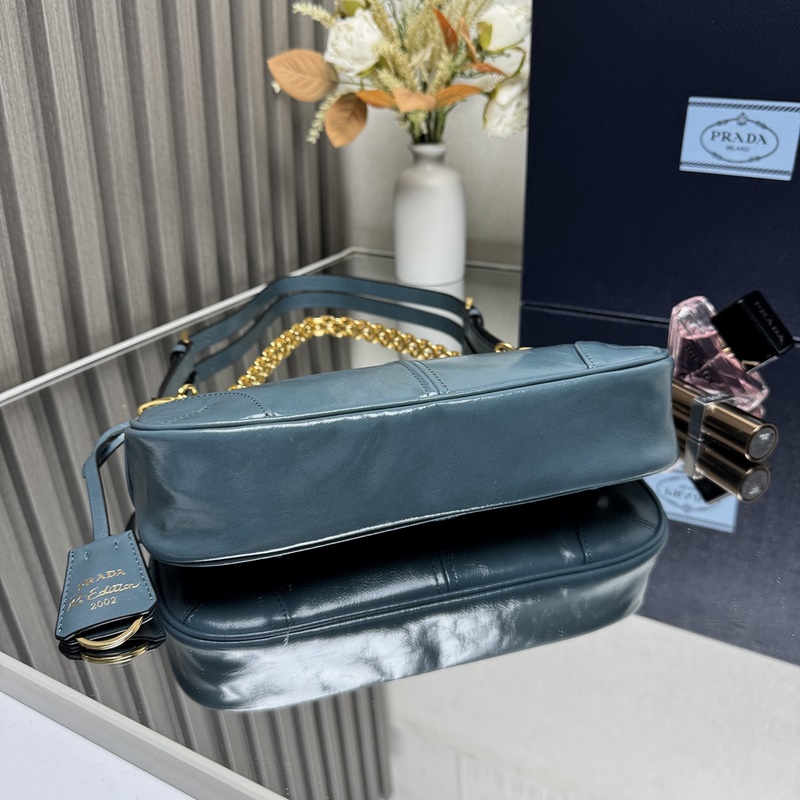 [프리미엄 오리지널] 신상 오일왁스 가죽 언더암 백 1BC221 오일왁스 가죽 이 우아하고 심플한 오일왁스 가죽 2002 숄더백은 혁신적인 수입 오일왁스 가죽을 사용했습니다. 광택 가죽 디테일이 포인트입니다. P하우스 스타일의 다용도 디자인 요소를 융합하여 체인 길이 조절 가능한 숄더 스트랩 금속 하드웨어 탈부착 가능한 키링을 갖추었습니다. 에나멜 처리된 삼각형 금속 로고가 브랜드의 클래식한 특징을 강조합니다. 가볍고 실용적인 이 제품을 지금 바로 만나보세요! 사이즈: 가로 26x 높이 12x 바닥 5cm!