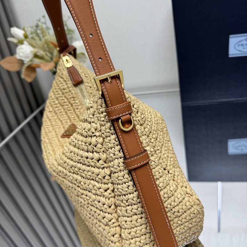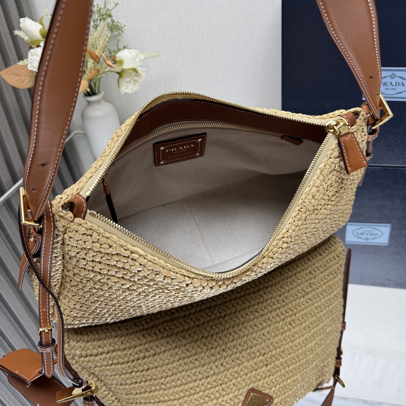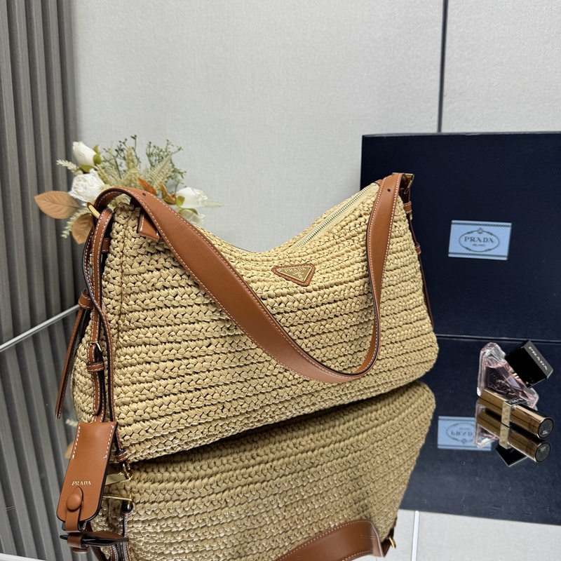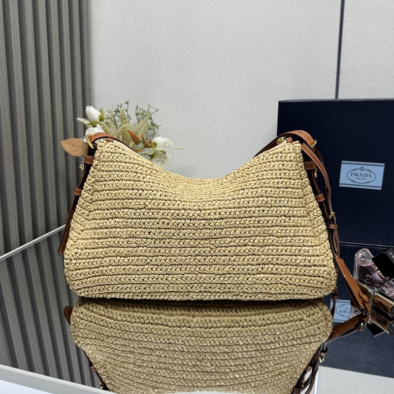 [프리미엄 오리지널] 초대형 짚 소재 언더암 백 1BC228 이 수제 짚 언더암 백의 디자인은 정말 훌륭합니다. 훅 뜨개질과 정교한 가죽 디테일이 독창적으로 조화를 이루며 프라다 아미 핸드백의 우아한 실루엣을 재해석했습니다. 텍스처와 소재가 조화를 이루며 다양한 모던 스타일을 완성하고 클래식한 메탈 삼각형 로고가 포인트를 더합니다. 착용 효과가 매우 뛰어나며 시선을 사로잡는 100%의 주목도를 자랑합니다. 여름 필수 아이템 지금 바로 구매하세요! 사이즈: 가로 39x 높이 24x 바닥 12cm!