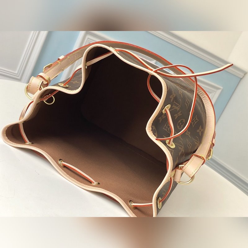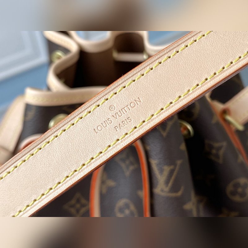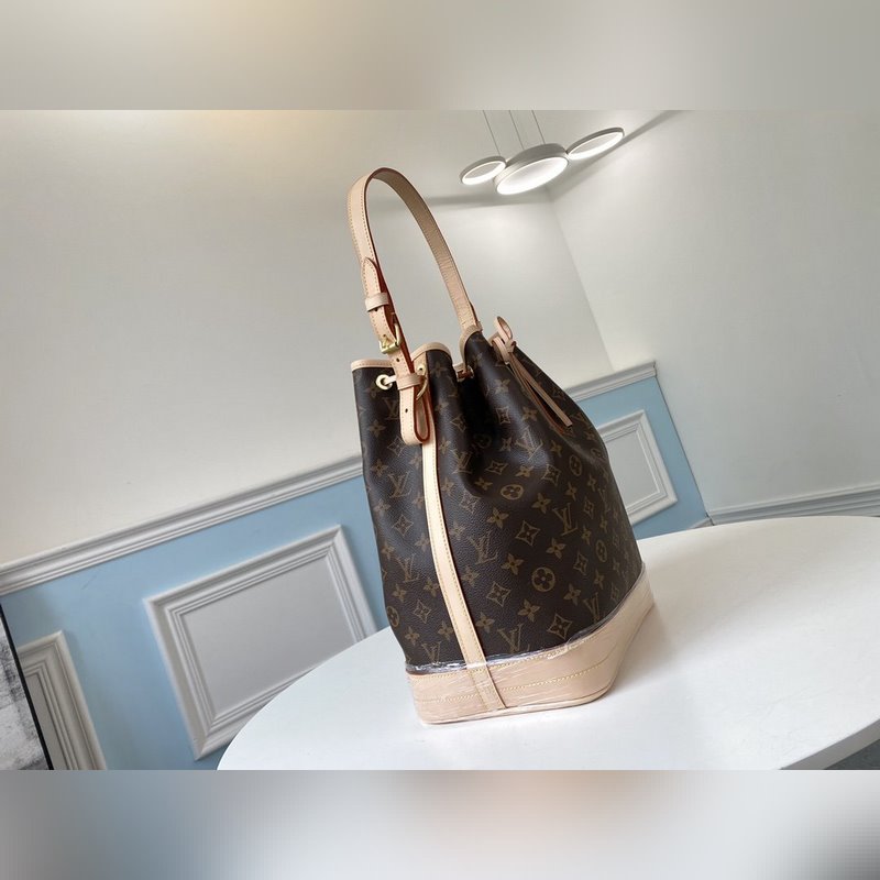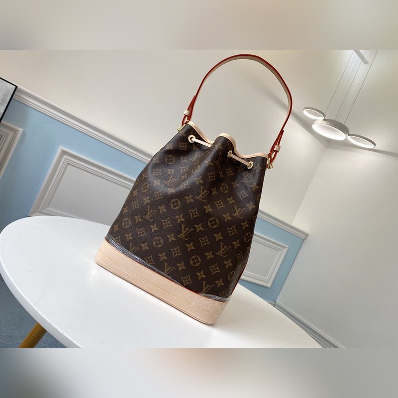 LV 모델 M42224 버킷 백 한 샴페인 제조업체가 가스트롱에게 와인 5병을 담을 수 있는 튼튼하고 매력적인 가방을 만들어 달라고 요청했습니다. 그 결과 1932년에 만들어진 시대를 초월한 노에가 탄생했습니다. 여기에 보이는 모델은 유명한 모노그램 캔버스로 제작되었습니다. 26 x 34 x 19cm 항목 번호: SG96181180