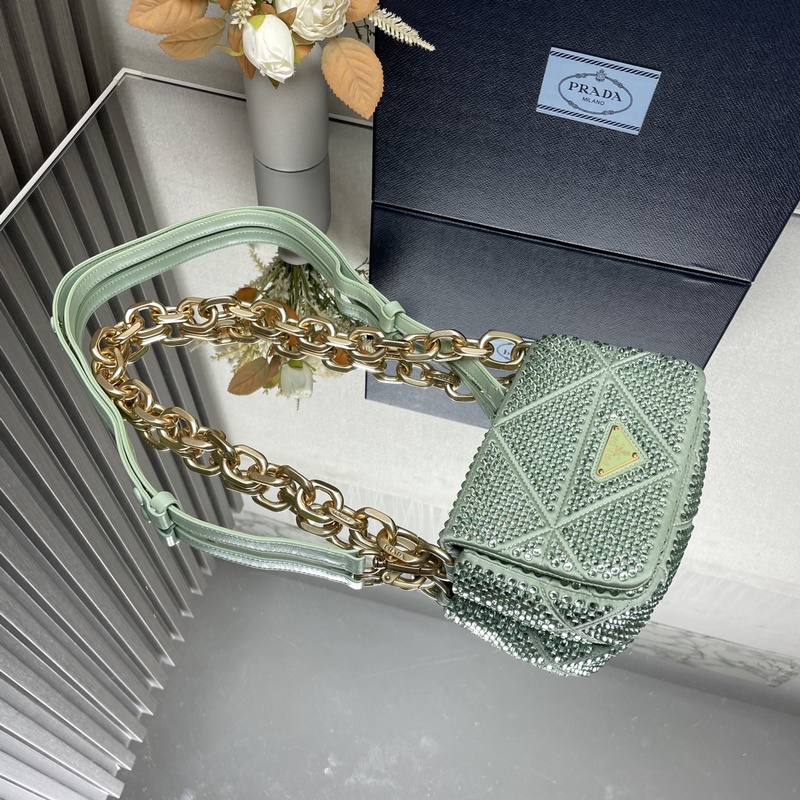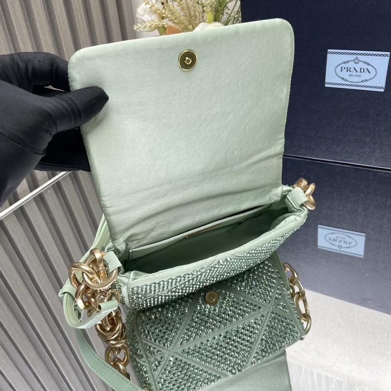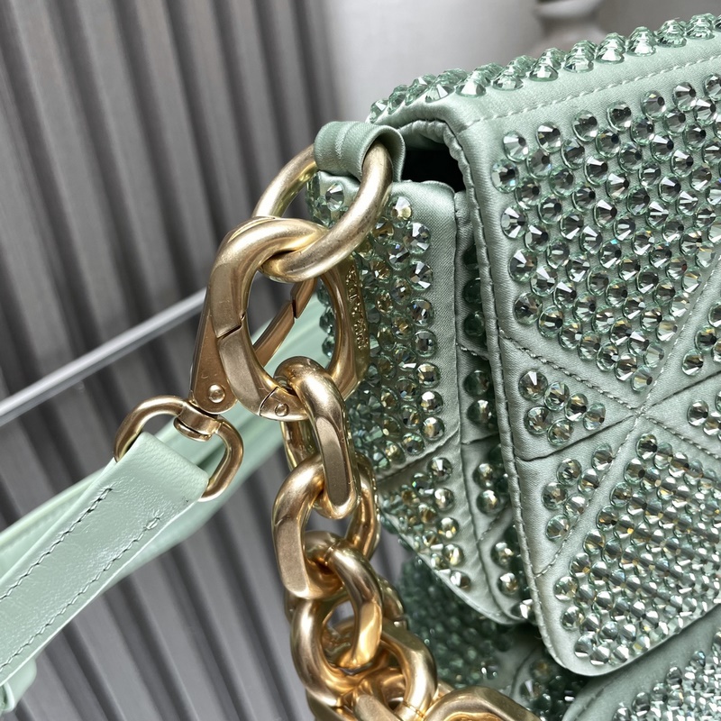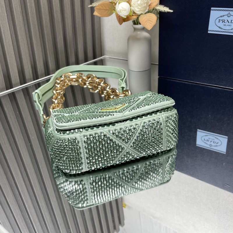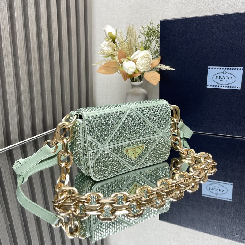 [프리미엄 오리지널] 2026 신상 크리스탈 백 1BD329 전체 크리스탈 소재와 스티치로 제작된 이 미니 핸드백은 화려한 면과 선이 조화를 이루며 삼각형 패턴을 그려내 브랜드의 장인정신을 보여줍니다. 체인 핸들 디자인은 보석 세계를 연상케 합니다. 반짝이는 요소가 가방 전체에 어우러지고 메탈 삼각형 로고가 정면을 장식합니다. 마음에 드신다면 서둘러 구매하세요. 사이즈: 길이 17cm*높이 11.5cm*너비 6cm