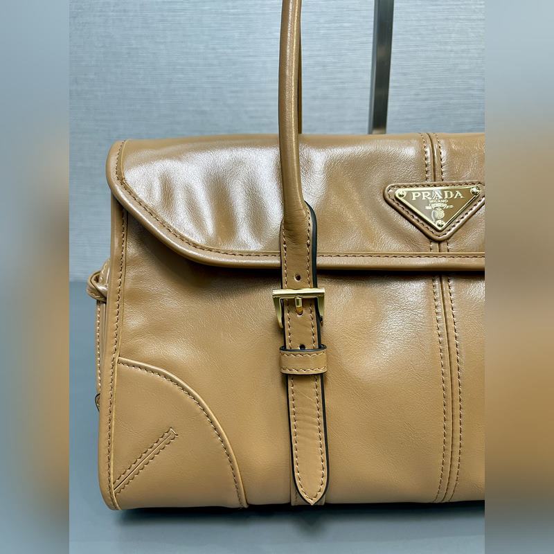 [프리미엄 오리지널] 신상 오일 레더 백 1BD376 이 가죽 핸드백은 간결하면서도 정교한 디자인으로 윤기 나는 광택이 고전적인 분위기를 풍깁니다. 현대적인 캐주얼 스타일을 강조하며 긴 손잡이로 어깨에 메기 편리합니다. 뒷면 가죽 포켓 에나멜 처리된 삼각형 금속 장식 자석 버튼으로 여닫는 플랩 디자인으로 수납 공간이 매우 넉넉합니다. 정말정말 유용해요! 패션 리더들의 필수 아이템 지금 바로 이 제품을 집으로 가져가세요! 사이즈: 가로 31x 높이 15x 바닥 12cm