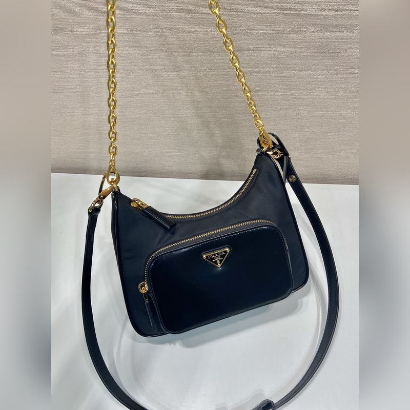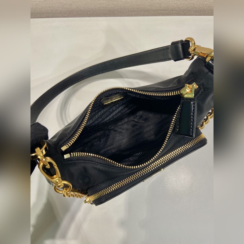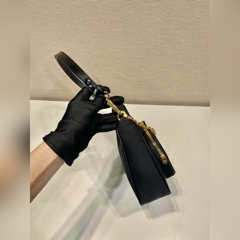 신상 언더암 백 1BC198 나일론과 광택 가죽 조합 이 심플한 핸드백은 나일론 소재와 광택 가죽이 조화를 이루어 모던하고 다양한 스타일에 어울리는 매력을 발산합니다. 아치형 디자인에 탈부착 가능한 체인과 조절 가능한 광택 가죽 숄더 스트랩이 있어 자유롭게 스타일을 연출할 수 있습니다. 메탈 액세서리가 고급스러운 분위기를 더하며 착용 시 매우 쿨하고 세련된 느낌을 줍니다. 시대를 초월한 베스트셀러 아이템입니다. 여러분 서둘러 구매하세요! 가로 22 x 높이 19.5 x 바닥 6cm