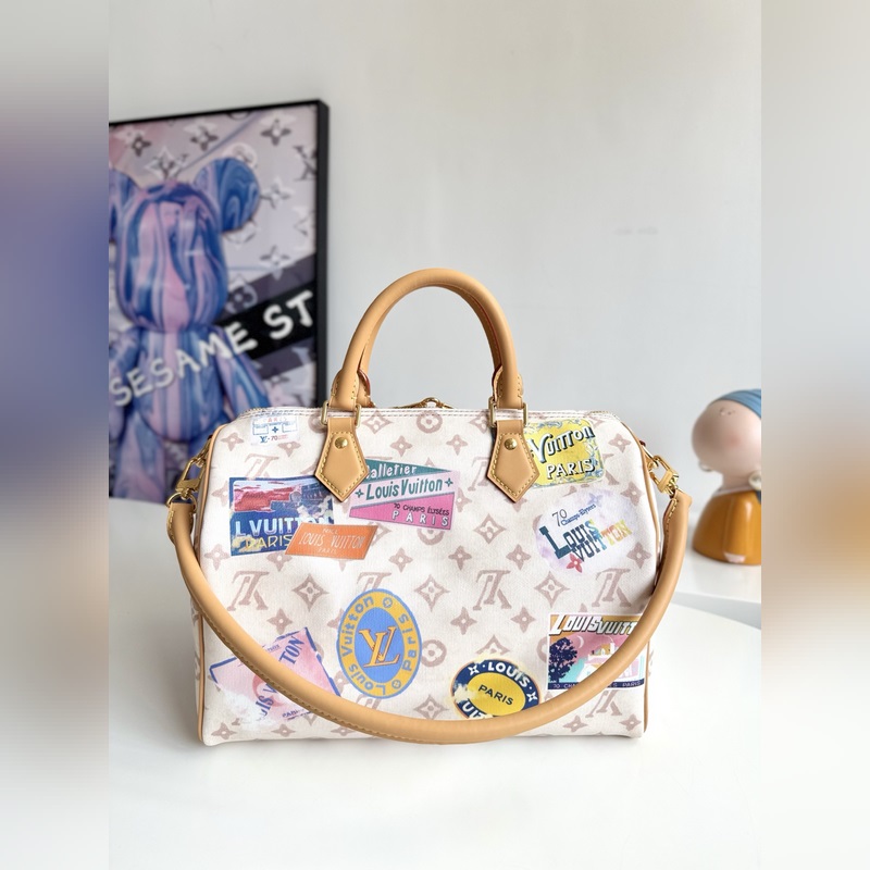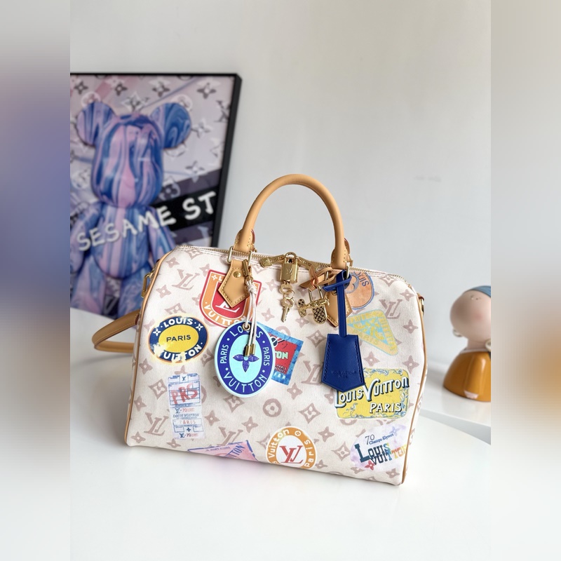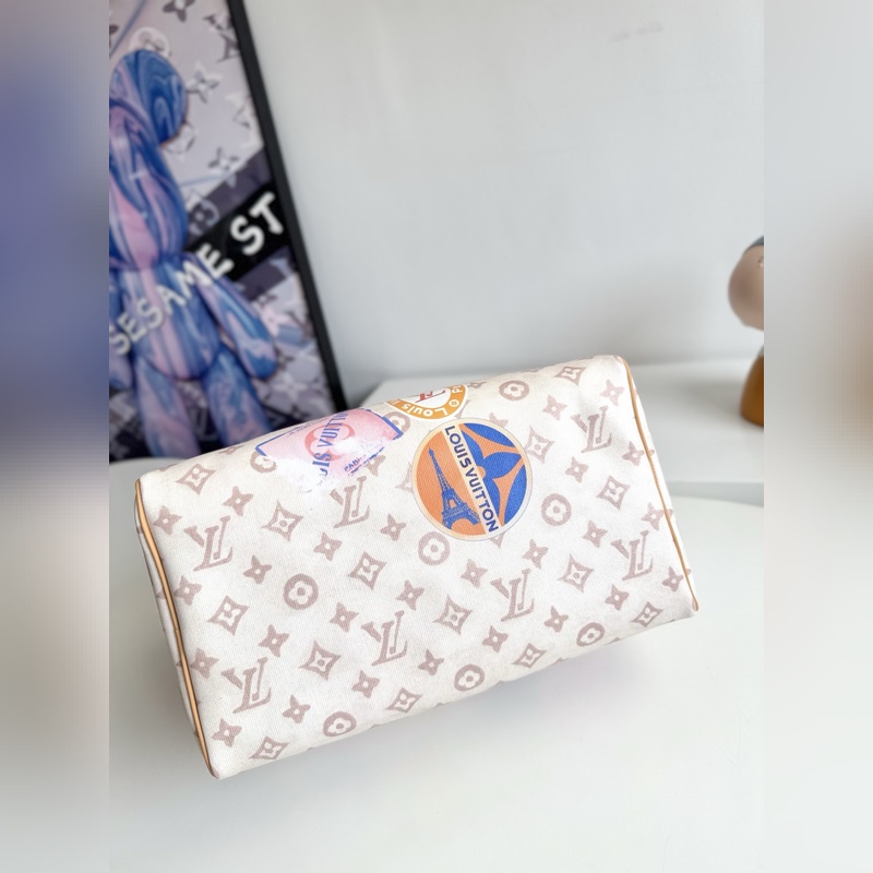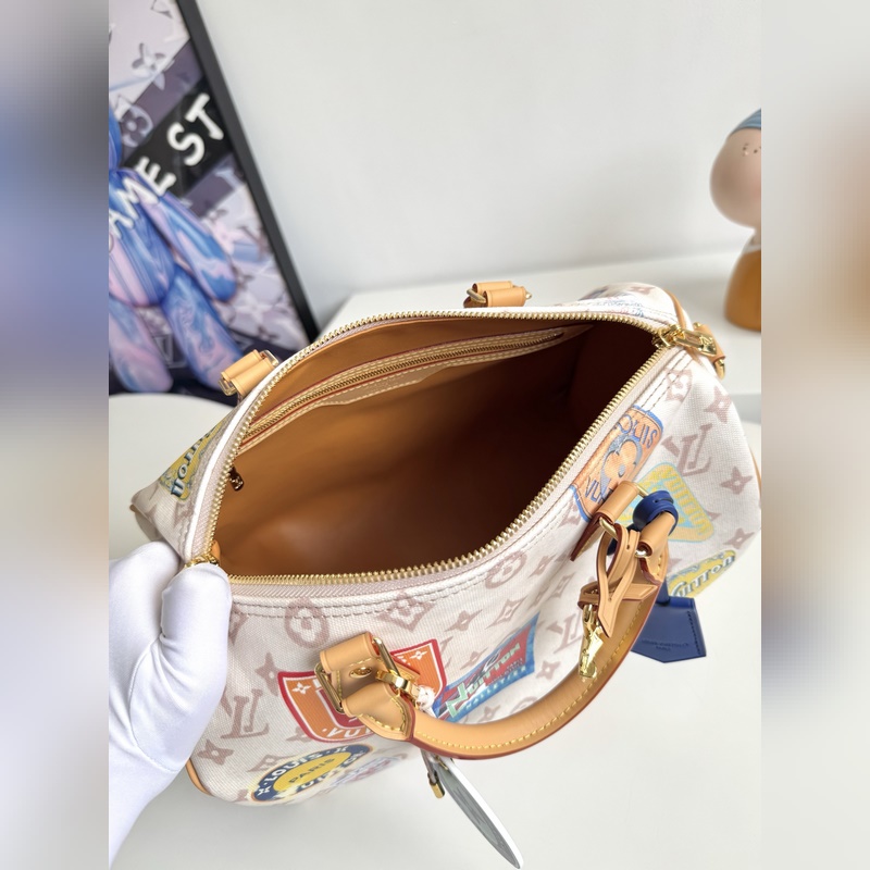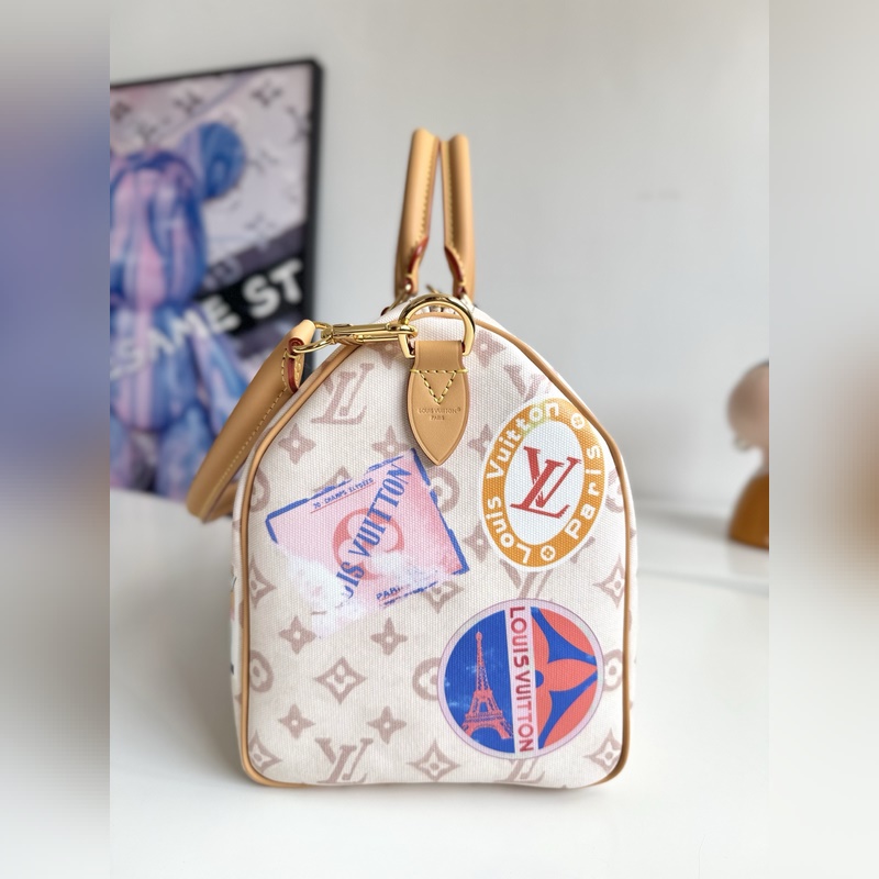 163동적 칩 FR 해외 원단 M14587 독점 실물 촬영! 본 제품 Speedy Soft 30 핸드백은 복고풍 터치로 Monogram Dune 요소를 표현했으며 비행기 모양 장식과 콜라주 효과 라벨을 더해 Gaston Louis Vuitton 컬렉션 디자인을 재해석했습니다. 긴 핸들로 어깨에 걸치기 편해 여행 동반자로 안성맞춤입니다. 사이즈: 30 x 21 x 17cm