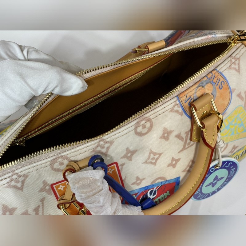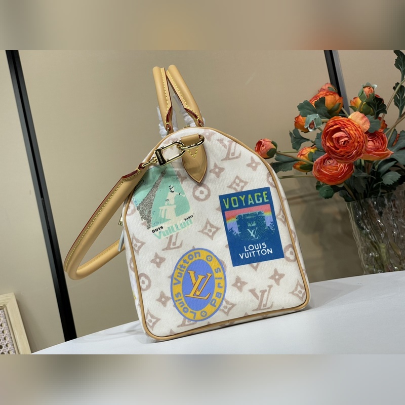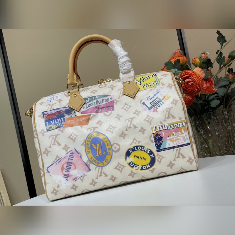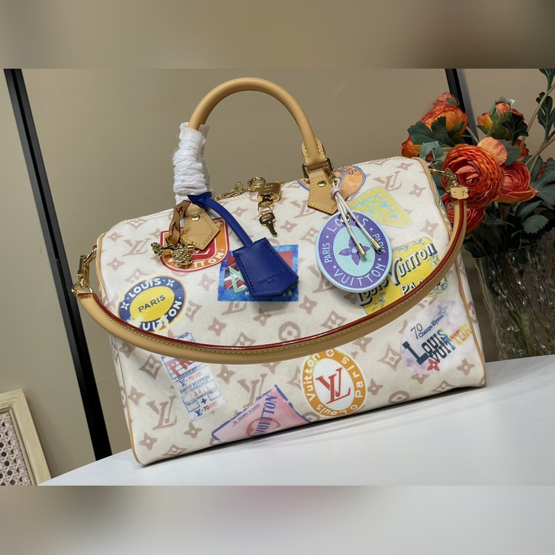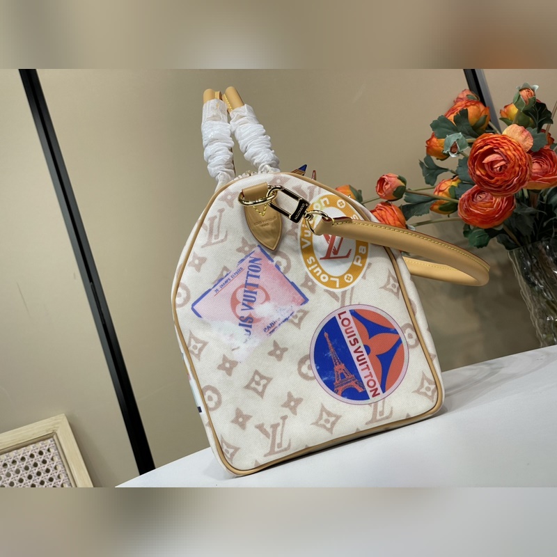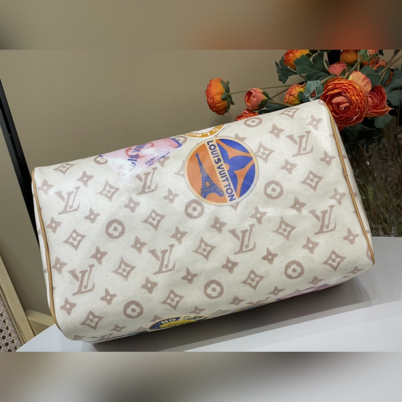 최상급 원단 복제품 독점 실물 촬영 [SPEEDY SOFT 30 핸드백] m14587 화이트 플라워/엠블럼 본 Speedy Soft 30 핸드백은 복고풍 터치로 Monogram Dune 요소를 재해석했으며 비행기 모양 장식과 콜라주 효과 라벨을 더해 Gaston Louis Vuitton 컬렉션 디자인을 오마주합니다. 긴 핸들로 어깨에 걸치기 편해 여행 동반자로 안성맞춤입니다. 사이즈: 21 x 17 x 30 cm