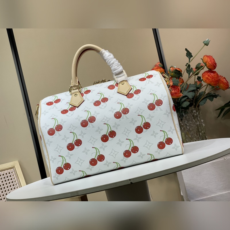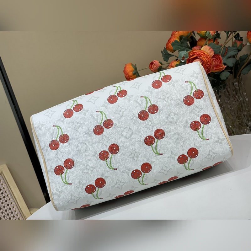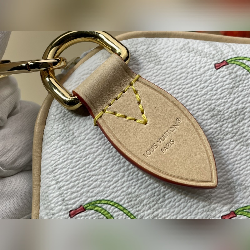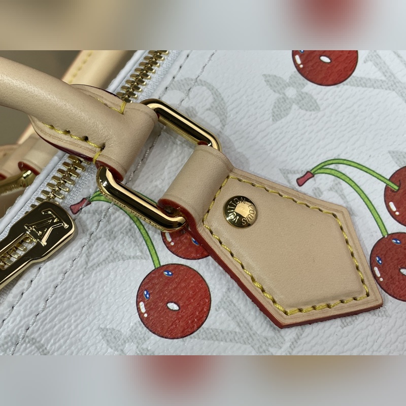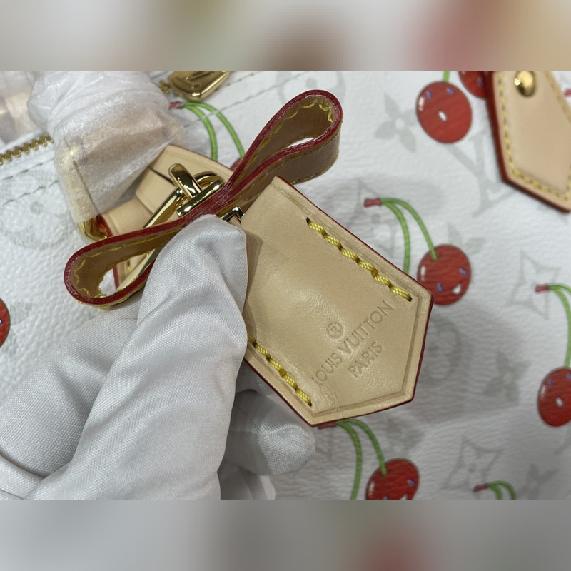 최상급 원단 복제품 독점 실물 촬영 [ Speedy Soft 30 핸드백] M14238 화이트 플라워/체리 루이 비통 x 무라카미 타카시 리메이크 시리즈의 개성적인 미학을 만나보세요. 모노그램 코팅 캔버스는 이번에는 깔끔한 색상으로 선택되어 일본 예술가의 화려하고 열정적인 체리 패턴을 돋보이게 합니다. 내부는 데님 천으로 구성되었으며 토론 소재의 상단 핸들과 탈부착 가능한 토론 숄더 스트랩은 가죽으로 제작되었습니다. 리본 모양 키 케이스가 디테일을 더합니다. 사이즈 : 17 x 30 x 21 cm