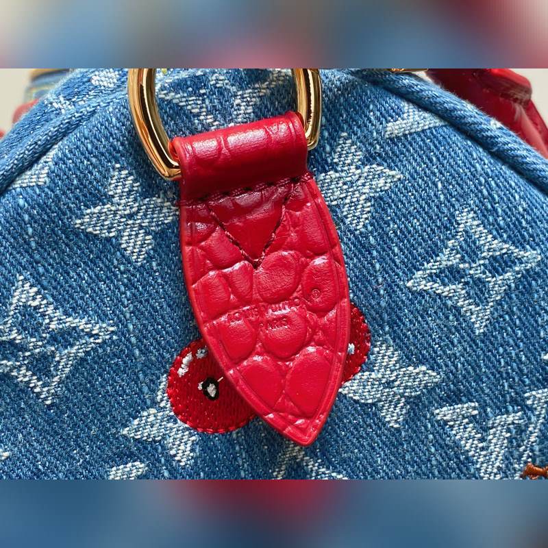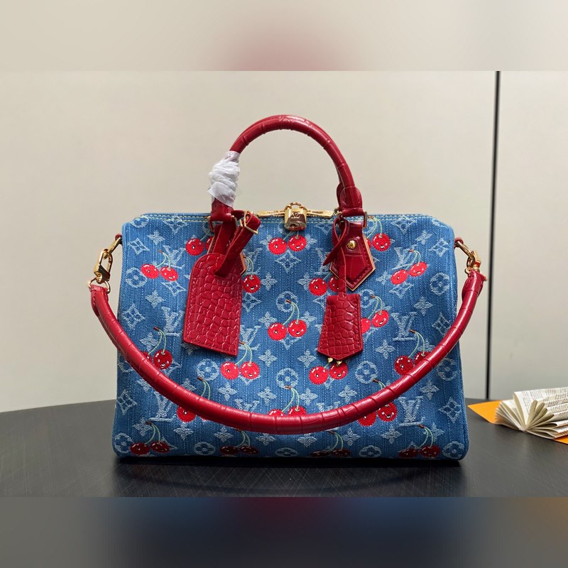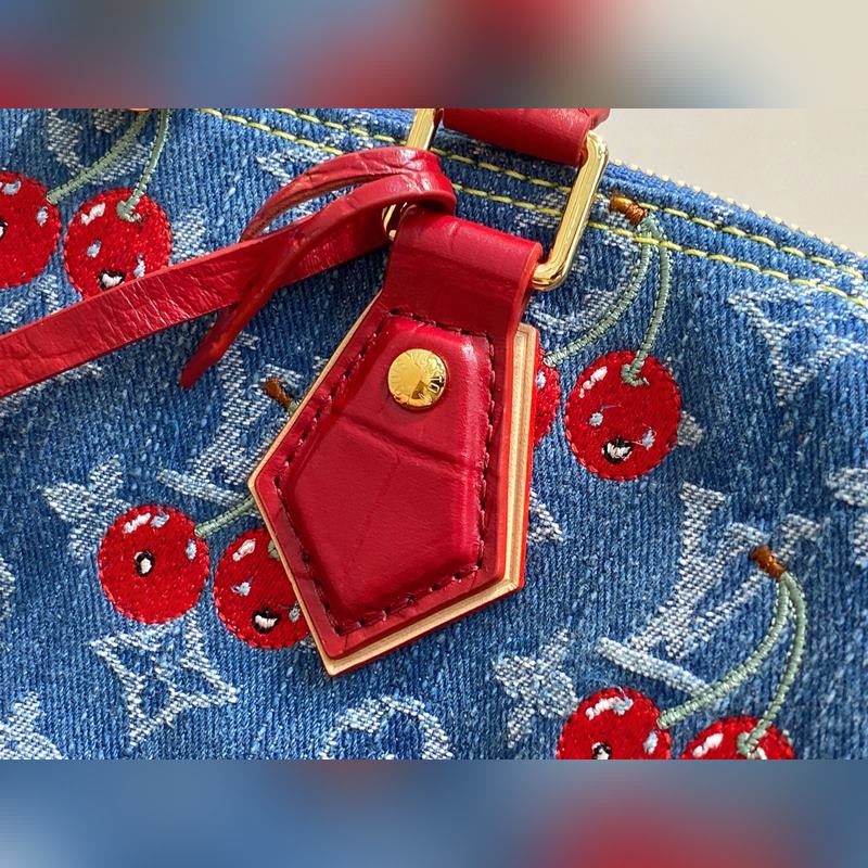 N87627 블루 데님 자수 체리 베개 백과 악어 무늬 스피디 소프트 30 핸드백 이 스피디 소프트 30 핸드백은 루이 비통의 정교한 표백 공정을 바탕으로 면직물 표면에 2005년 탄생한 모노그램 데님 패턴을 새겼습니다. 가죽 트림과 광택 있는 금속 디테일로 포인트를 더했습니다. 키 케이스와 탈부착 가능한 명판은 브랜드의 가방 제작 전통을 상징하며 탈부착 가능한 토론 핸들은 편안한 어깨 착용감을 선사합니다. 30.0 x 21.0 x 17.0 cm (길이 x 높이 x 너비)