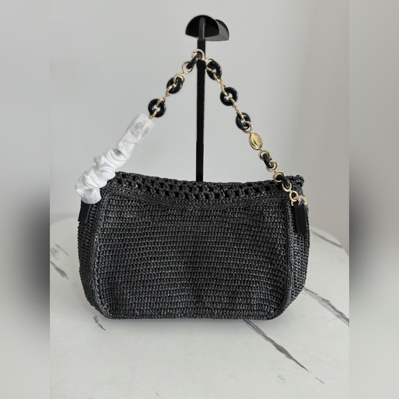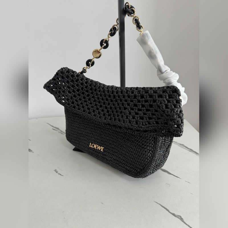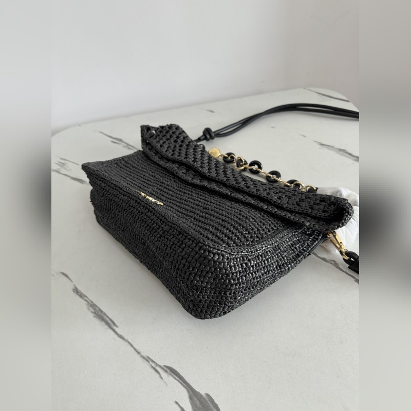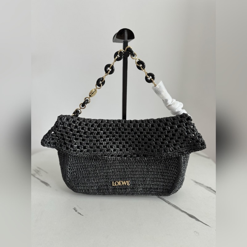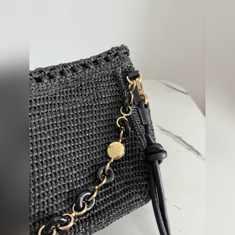 Ola는 부드럽고 가벼우며 다용도로 사용 가능한 여름용 가방으로 곡선형 바디 플로팅 플랩 두꺼운 도넛 체인 스트랩이 특징입니다. 이 미디움 사이즈 모델은 라피야초로 제작되었으며 송아지 가죽 디테일이 더해졌습니다. 탈부착 가능한 튜브형 송아지 가죽 숄더 스트랩 도넛 체인 플랩으로 여닫는 내부 포켓에는 Anagram 금속 LOE 로고가 새겨져 있습니다. 소재: 라피야초/송아지 가죽 사이즈 26-15-9