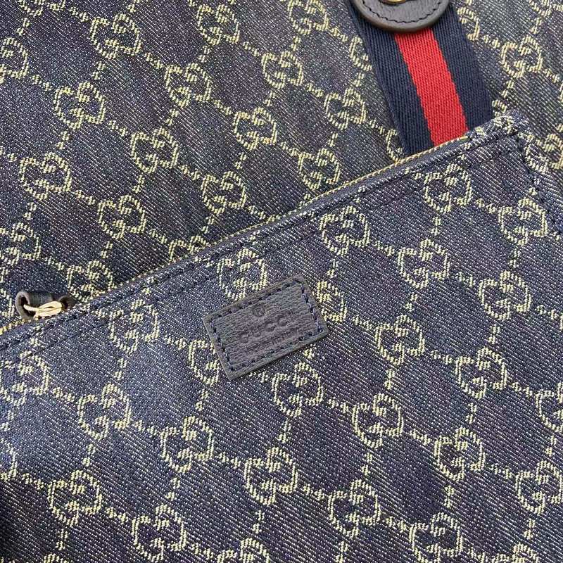 구찌 질리오 컬렉션이 피렌체 2026 프리 봄 패션쇼에서 새롭게 선보이며 브랜드의 이탈리아적 뿌리에 경의를 표하고 영원한 전통과 혁신 정신을 조화시켰습니다. 이 대용량 토트백은 GG 데님 소재로 정교하게 제작되었으며 끈 테두리 장식이 더해졌고 분리 가능한 클러치가 함께 제공됩니다. 블루와 화이트 GG 데님 블루와 레드 직물 테두리 옅은 골드 톤 액세서리 갈색 면 안감 더블 G 분리 가능한 클러치 백 포함 자석식 여밈 모델: 853972. 사이즈: 550cm(너비) x 47cm(높이) x 14cm(깊이) 색상: 블루 데님/블루 가죽.