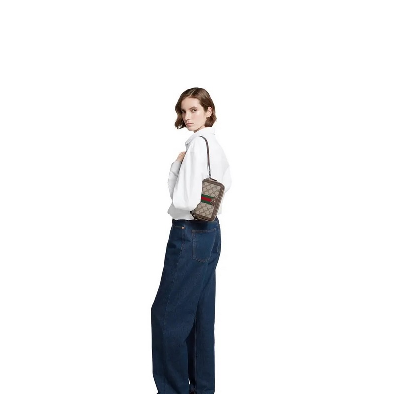 Ophidia 시리즈는 독창적인 실루엣과 기능성을 정교하게 구현하며 상징적인 베이지와 브라운 컬러 조합으로 부드러운 질감과 세련된 스타일의 가방 아이템을 완성합니다. 플랩에는 상징적인 직조 테이프 롤링 디테일이 적용되었습니다. 베이지와 다크 브라운 GG 로고 패턴 코팅 직물 갈색 가죽 롤링 마감 옅은 골드 톤 액세서리 그린 리넨 코튼 혼방 안감 더블 G 리본 내부: 카드 수납공간 2개 조절 가능한 가죽 숄더 스트랩 높이: 55 cm 자석 버튼 여밈 모델: 838471. 크기: 19.5cm(가로) x 11cm(높이) x 6cm(깊이) 무게: 약 240g 색상: 브라운/PVC.