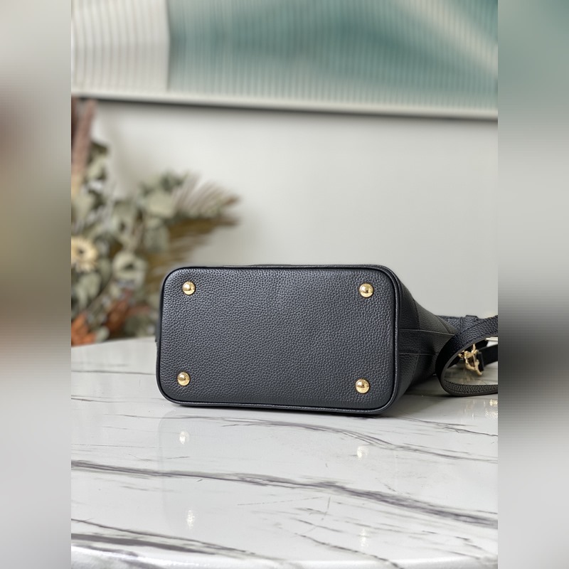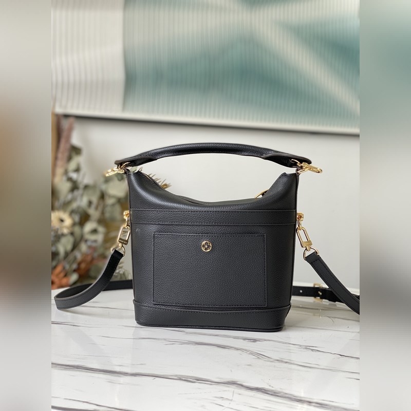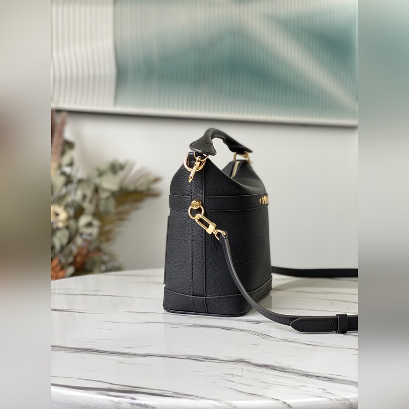 LV 아이템 번호: M57934 크루저 소형 가방 소프트 더플백의 기능적 세부 사항을 계승한 이 가방은 이중 지퍼 잠금장치를 통해 컴팩트한 크기를 버킷백의 넉넉한 용량으로 바꿀 수 있습니다. 부드러운 그레인 송아지 가죽은 상징적인 사각형 모양을 구현합니다. 크기: 25 x 22.5 x 13cm 품번: SG96181480