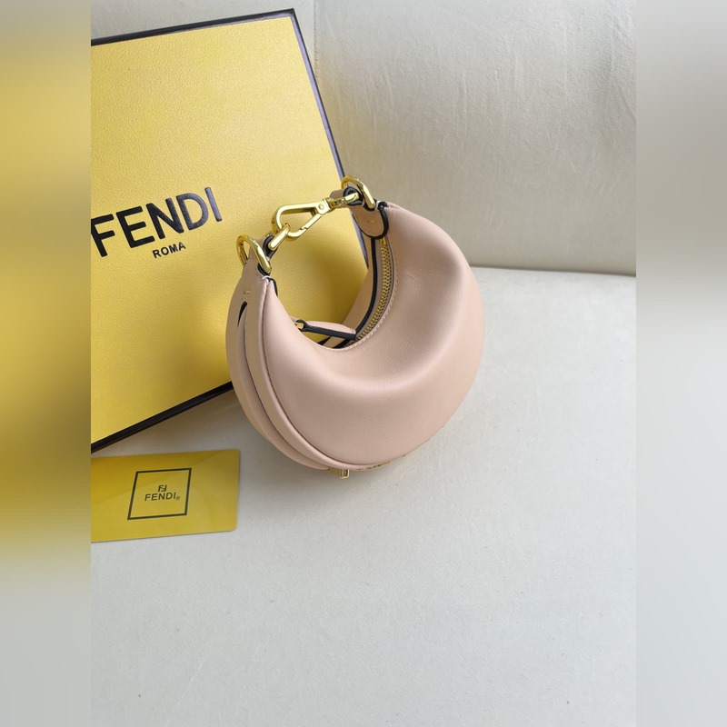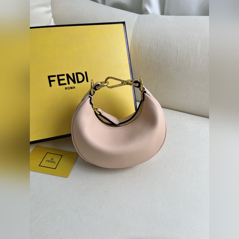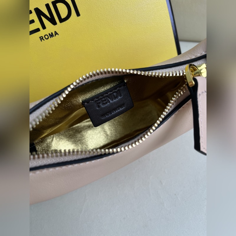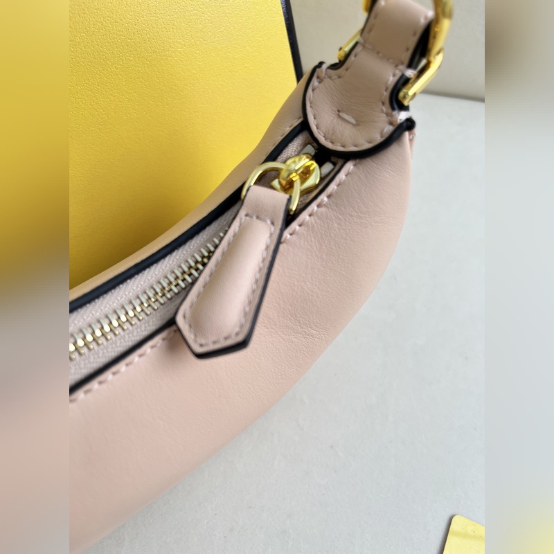 핑크 소형 펜디프라피(Fendipraphy) 액슬백은 초승달 모양을 특징으로 하며 클래식한 메탈 로고를 [Fendi] 를 가방 하단에 장식했으며 가방의 실루엣은 몸의 라인을 잘 따라가며 겨드랑이에 메었을 때 패션 감각이 가득해 마치 걸어다니는 유행 아이템 그 자체입니다! 사이즈 16.5x14x5cm 모델 번호: 206