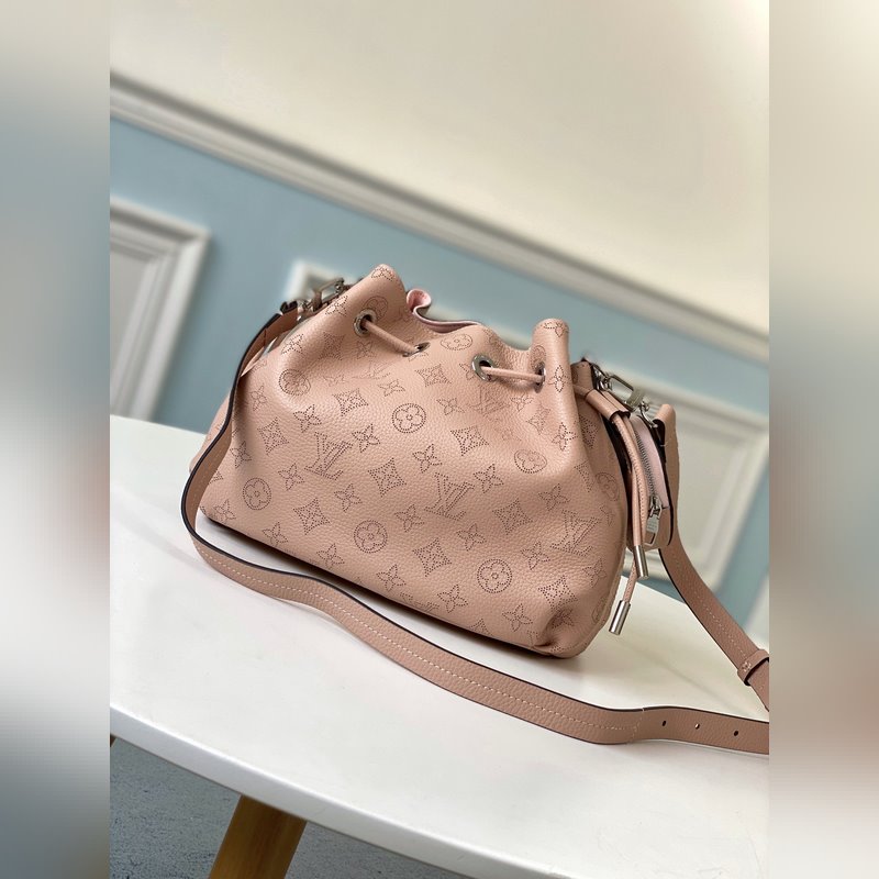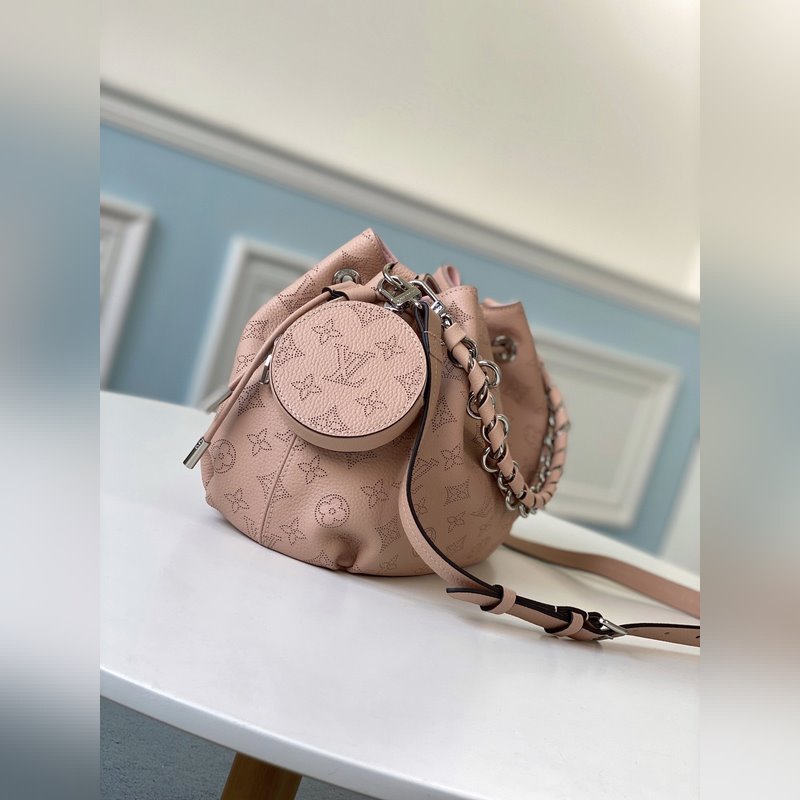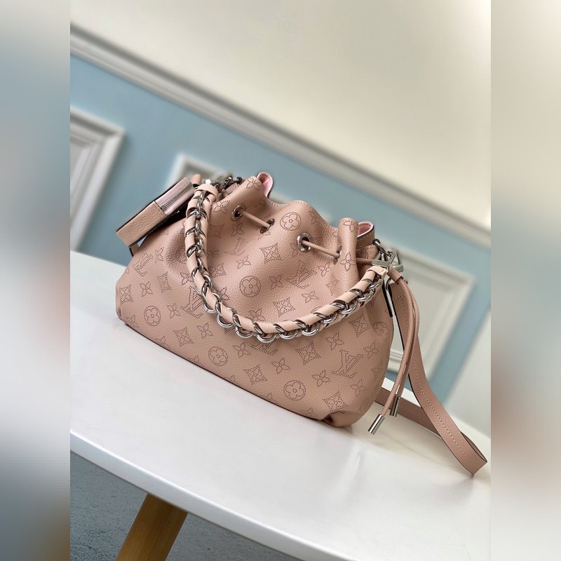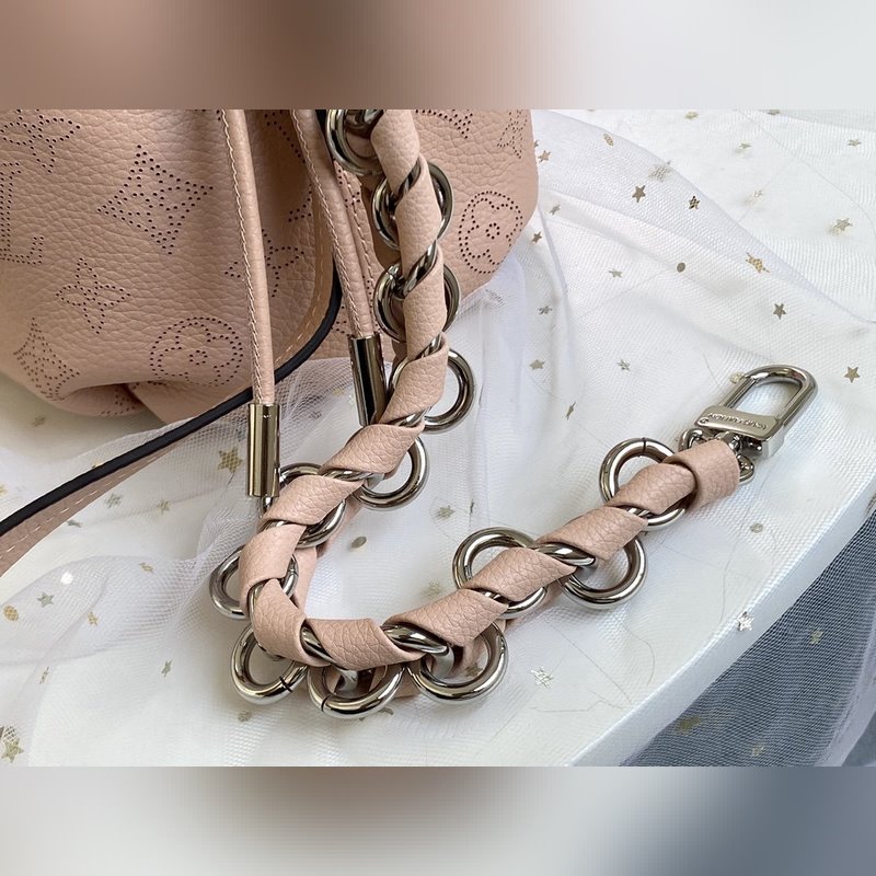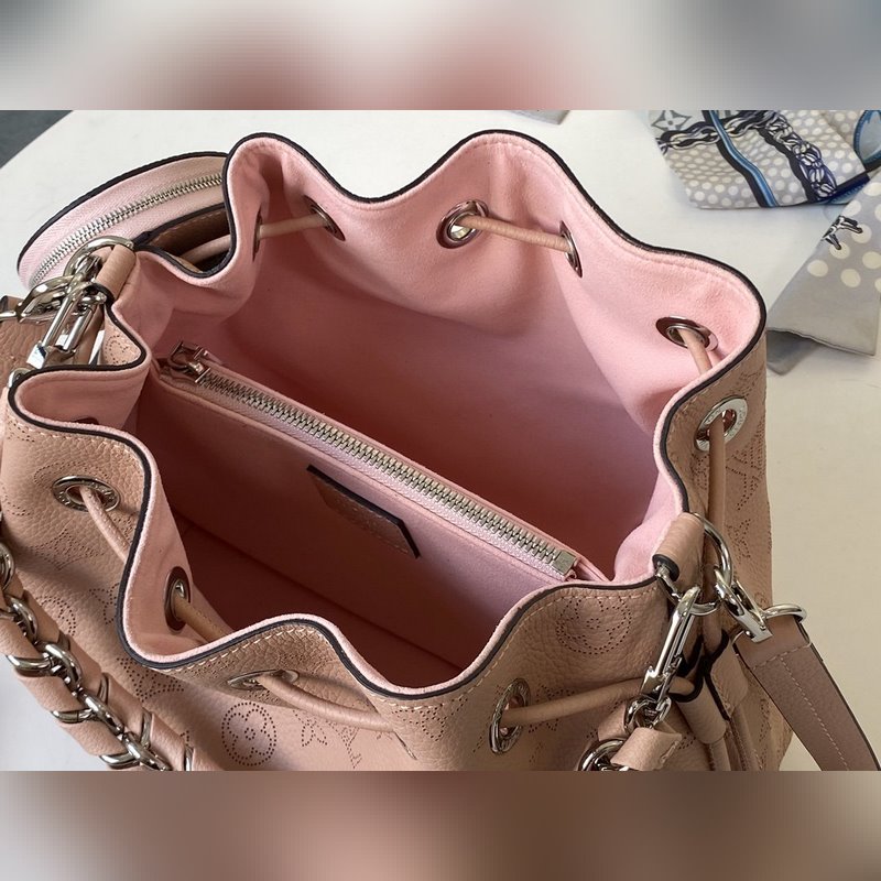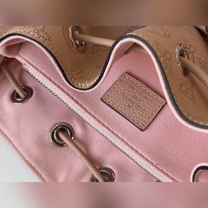 LV 모델 M55798 핑크 무리아 버킷백 구멍이 뚫린 기퓌르 송아지 가