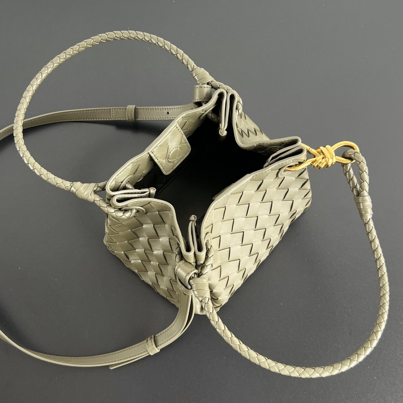 BV 신상 인트레차토(Intrecciato) 가죽 숄더백 탈부착 가능한 크로스백 스트랩 포함 내부에 미니 파우치 수납 가능 BV 특유의 인트레차토 디자인 유지 실물을 보지 않아도 반할 만한 디자인 작은 골드 매듭 디테일이 고급스러운 미니멀리즘을 연출 다양한 상황에 맞춰 활용 가능 796569 사이즈: 21X17X16.5cm