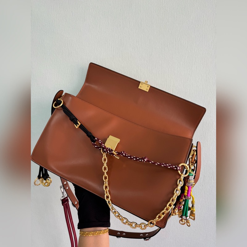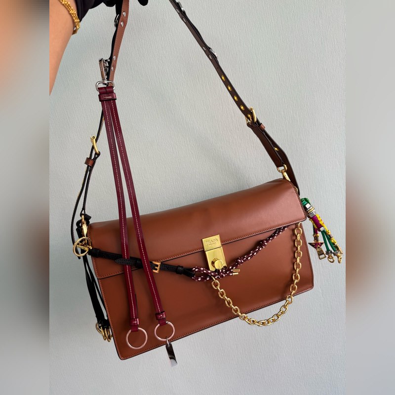신제품 1BD378 대형 이 새로운 Soft Sound 핸드백은 내외부 모두 부드러운 가죽으로 제작되어 공간이 넓고 세련된 디자인으로 다양한 스타일에 잘 어울립니다. 단일 숄더 디자인에 두 개의 수납 공간이 있으며 금색 금속 액세서리가 특징입니다. 가장 좋아하는 점은 탈착 가능한 펜던트가 포인트로 다채로운 패션 스타일을 강조합니다. 착용 시 스타일리시한 분위기를 연출하며 인기 있는 아이템으로 주목받고 있습니다. 아이들부터 어른까지 모두에게 추천하는 제품입니다. 서두르세요! 길이 35cm x 높이 19.5cm x 바닥 너비 10.5cm 9869