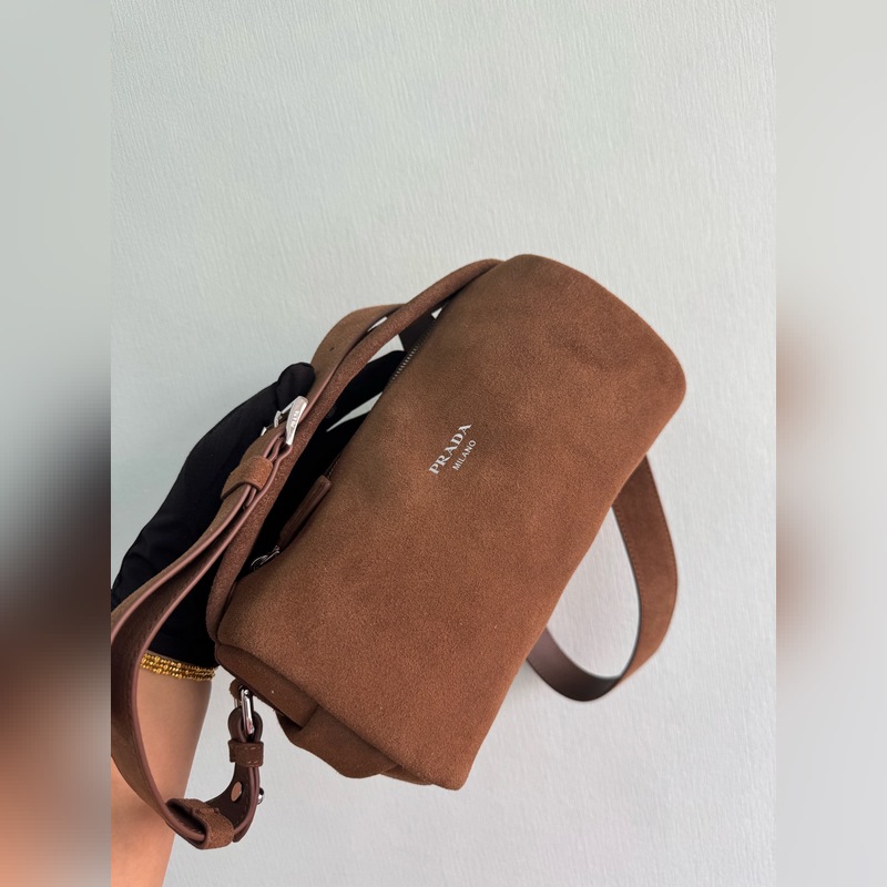 신제품 2VH188 샌드블라스트 가죽이 입고되었습니다. 이 핸드백/숄더백은 이탈리아산 Soft Grain 수입 벨벳 샌드블라스트 가죽을 사용했으며 최고급 금속 하드웨어를 적용했습니다. 현대적인 디자인이 캐주얼한 분위기를 강조하며 세련된 디테일과 금속 하드웨어가 조화를 이루어 생동감을 더합니다. 컴팩트한 디자인으로 다양한 스타일에 잘 어울리며 부드러운 텍스처의 그레인 가죽이 유려한 미니멀한 라인을 강조합니다. 이 액세서리는 뛰어난 공예 기술을 보여줍니다. 에나멜 처리된 삼각형 금속 로고가 포인트로 장식되었습니다. 손잡이로 들고 다니거나 어깨에 메거나 크로스백으로 사용할 수 있으며 분리 가능한 어깨 스트랩 지퍼 개폐식 양가죽 라이닝이 적용되어 심플하면서도 실용적입니다. 착용 시 편안하고 스타일리시한 느낌을 선사합니다. 크기: 길이 24cm × 너비 12cm × 높이 11.5cm 6069