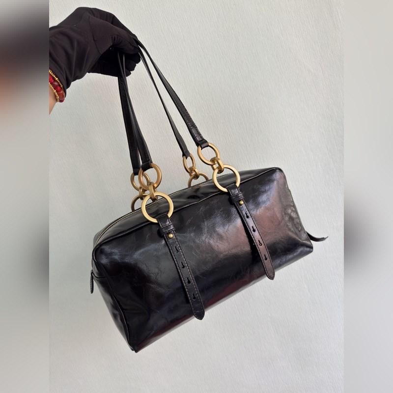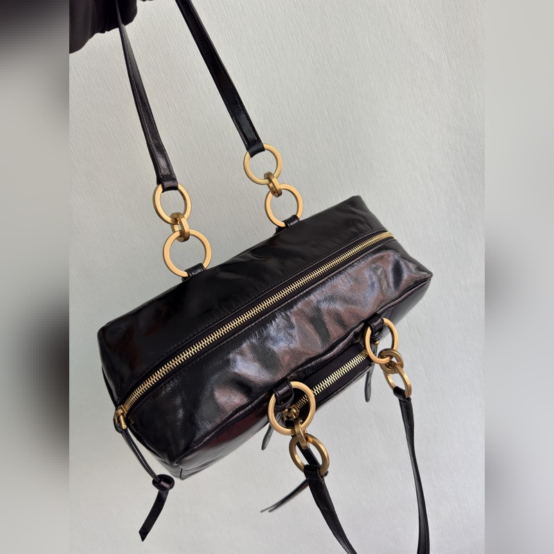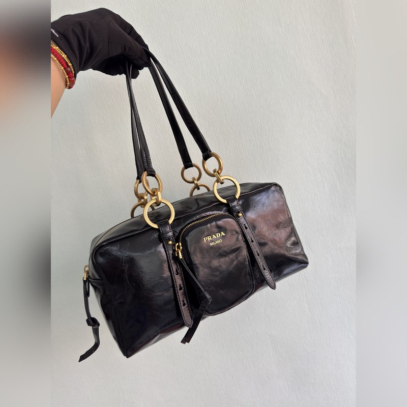 신제품 오일 왁스 가죽 1BB138 대형 이 단숏 가방은 부드러운 오일 레더로 디자인을 새롭게 재해석했으며 복고풍 금속 하드웨어와 클래식한 지퍼 포켓이 복고 감성을 강조합니다. 어깨에 메거나 손에 들고 사용할 수 있으며 넓은 수납 공간으로 실용적이며 스타일리시한 디자인이 특징입니다. 시대를 초월한 클래식 아이템으로 여성분들 서둘러 구매하세요! 길이 30cm × 높이 14cm × 바닥 너비 13.5cm 6369730