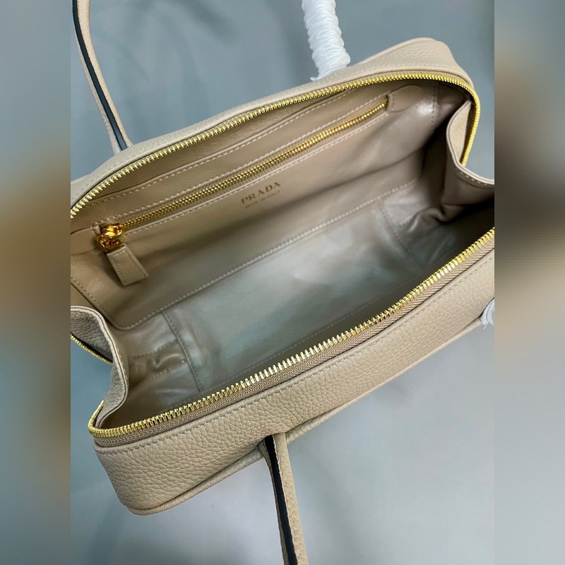 【프리미엄 원단】 신제품 (1BB126 리치 텍스처 전체 가죽) 입고되었습니다! 긴 손잡이와 겨드랑이 부분에 위치한 손잡이가 특징인 핸드백 지퍼 손잡이 가방. 우아한 기하학적 선이 핸드백의 세련된 실루엣을 강조하며 유려한 곡선이 현대적인 분위기를 연출합니다. 구조적인 가방 본체는 가죽으로 제작되어 정교한 기술로 완성되었으며 세심한 디테일로 브랜드의 장인 정신을 강조합니다. 반짝이는 금속 액세서리와 상징적인 에나멜 금속 삼각형 로고가 세련된 디테일을 더했으며 내부에 지퍼 포켓이 하나 있습니다. 사이즈: 29×14×8.5cm!