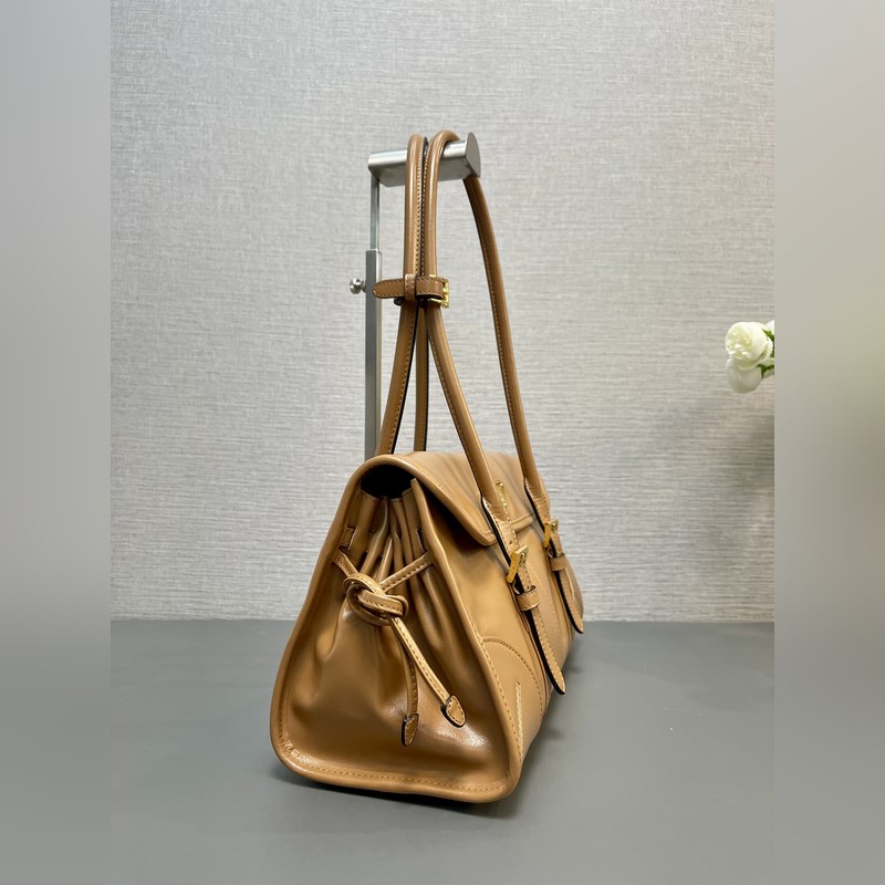 【프리미엄 원단】 신상 오일 왁스 가방 1BD376 이 가죽 가방은 간결하면서도 세련된 디자인으로 윤기 있는 색상이 고전적인 분위기를 자아냅니다. 현대적인 캐주얼 스타일을 강조하며 긴 손잡이로 어깨에 걸기 편리합니다. 뒷면 가죽 포켓에 에나멜 처리된 삼각형 금속 장식과 자석 버튼으로 열리는 플랩 디자인으로 넓은 수납 공간을 제공합니다. 정말 유용하고 실용적이며 패션 리더들의 필수 아이템입니다. 지금 바로 이 제품을 구매하세요! 크기: 길이 31cm × 높이 15cm × 바닥 너비 12cm