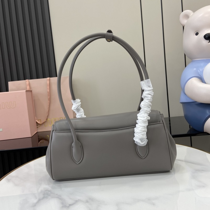 MIUMIU 2024 가을/겨울 신상 바게트 백 프렌치 바게트 디자인이 트렌드를 선도하는 새로운 스타일로 소녀의 감성이 서적의 분위기와 어우러져 자유롭고 우아한 대공녀의 분위기를 연출합니다. Miu만의 독특한 매력을 담은 이 가방은 크기가 적당해 달콤하면서도 세련된 스타일을 완벽히 소화하며 일상적인 사용에도 충분한 수납 공간을 갖추고 있어 실용성과 디자인을 모두 갖춘 제품입니다. 정말 사랑하지 않을 수 없네요! 모델 번호: 5BD265. 크기: 28x11x15cm. 색상: 회색 전체 가죽/원본 가죽. 이탈리아 디자인.