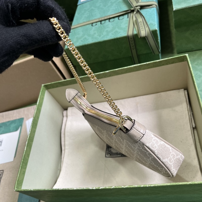 Ophidia 시리즈 미니 핸드백. Ophidia 시리즈는 지속적으로 확장되어 매 시즌 독특한 디자인과 소재를 선보입니다. 이 미니 핸드백은 미색과 흰색 GG Supreme 캔버스로 정교하게 제작되었으며 이중 G 액세서리로 세련되게 장식되었습니다. 미색과 흰색 GG Supreme 캔버스 미색 가죽 롤링 엣지 금색 톤 액세서리 면과 마 혼방 안감에 이중 G 로고. 내부: 오픈 포켓 1개 체인형 상단 손잡이(높이 18cm) 상단 지퍼 개폐식. 무게: 약 0.32kg. 모델 번호: 764960. 크기: 10(길이) x 19(너비) x 3cm(두께) 색상: 오트밀색/PVC. 이탈리아 디자인
