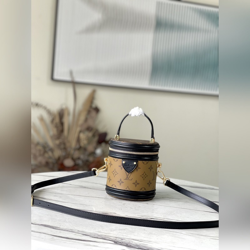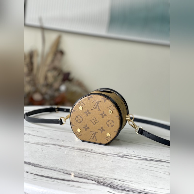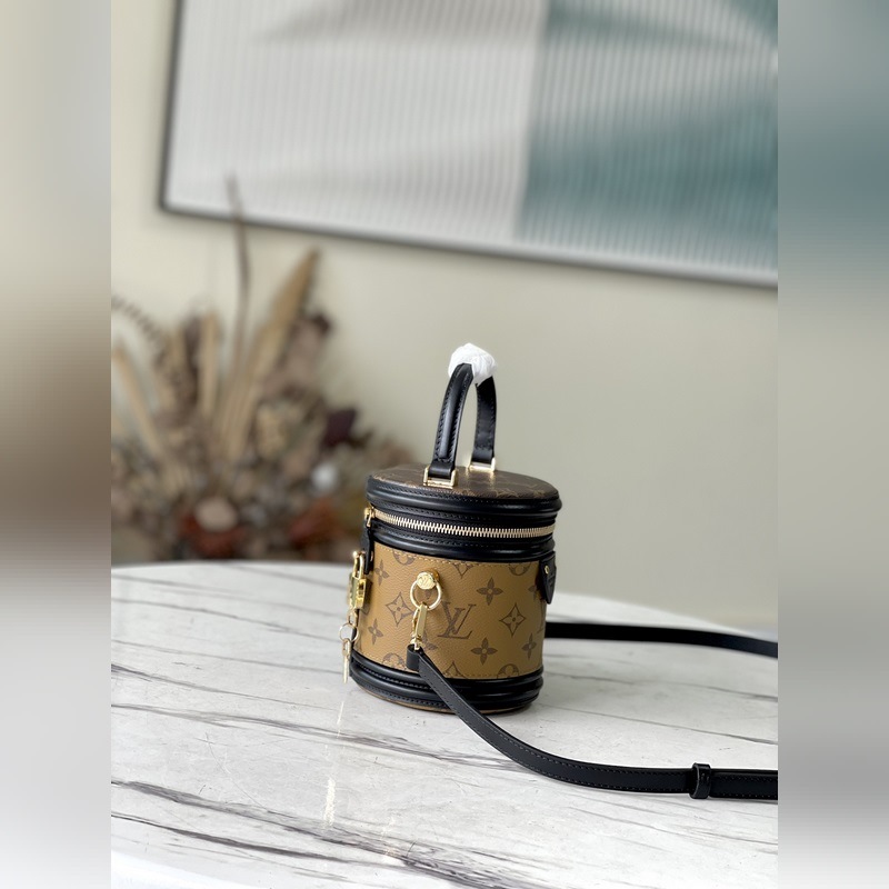 LV 메이크업 라운드 배럴 백 모델 번호 M43986 미니 활주로 모델