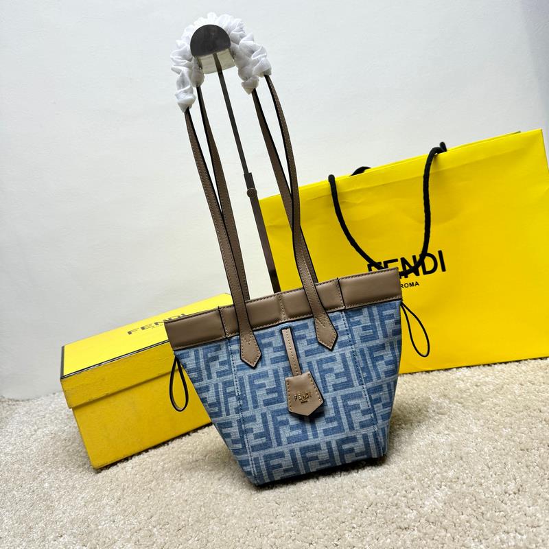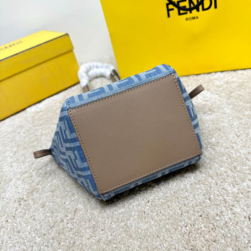 중형 오리가미 핸드백 데님 소재의 연청색 천으로 제작되었으며 FF 로고가 장식되어 있습니다. 이 디자인은 변형 가능한 혁신적인 디자인으로 FENDI의 이중성과 창의성을 강조합니다: 8개의 자석으로 구성된 유연한 메커니즘을 갖추어 오리가미 스타일의 버킷 백으로 접을 수 있으며 자석이 중간 자석에 고정된 상태에서 양쪽의 짧은 어깨 끈에 있는 가죽 끈을 가볍게 당기면 손잡이가 있는 핸드백으로 변신합니다. 금속 FENDI 로고와 미색 가죽 디테일이 돋보이는 키링 장식이 포함되어 있습니다. 내부에 라이닝과 내부 수납 공간이 있으며 금색 마감 처리된 금속 부품이 특징입니다. 가죽 이중 손잡이 디자인으로 손잡이로 들고 다니거나 어깨에 메어 사용할 수 있습니다. 크기: 15×15×18.5cm 모델 번호: 9918 데님