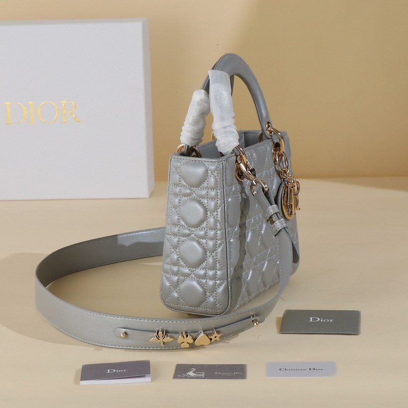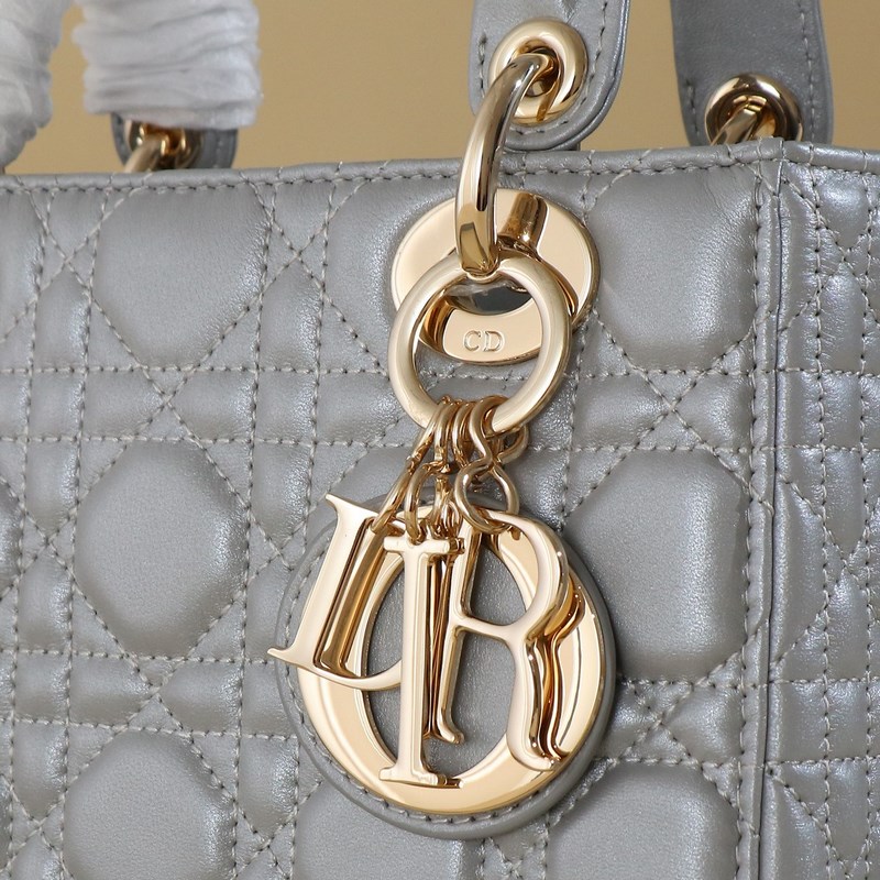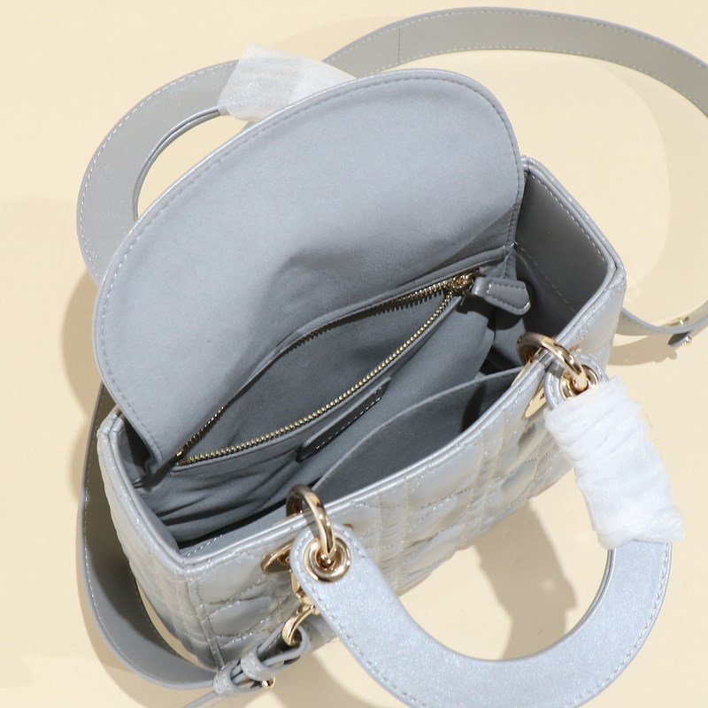 소형 레이디 디올 마이 ABCDior 핸드백 진주 광택 회색 양가
