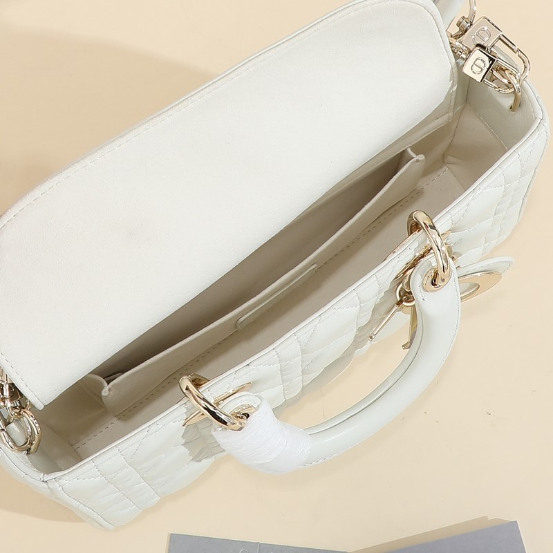 최고급 원단 최고 버전 디올 다이애나 횡형 다이애나 양가죽 다이애나 【백색 양가죽 덩굴무늬】 이 레이디 D-Joy 핸드백은 디올이 우아함과 아름다움에 대한 깊은 통찰을 완벽히 담아냈습니다. 세련되고 고전적인 디자인은 시대를 초월해 변함없는 매력을 발산하며 레이디 디올 시리즈의 간결한 미학을 강조합니다. 검은색 양 가죽으로 정교하게 제작되었으며 덩굴무늬 자수 선으로 장식되어 있습니다. 연금색 금속 D.I.O.R. 장식이 품격을 높여주며 우아한 실루엣에 생동감을 더합니다. 분리 가능한 체인 스트랩과 조절 및 분리 가능한 가죽 스트랩이 포함되어 손잡이로 들거나 크로스백으로 착용할 수 있어 일상적인 스타일링에 완벽한 선택입니다. 분리 가능한 체인 스트랩 분리 가능하고 조절 가능한 가죽 숄더 스트랩 모델 번호: M0540 크기: 26×13.5×5cm