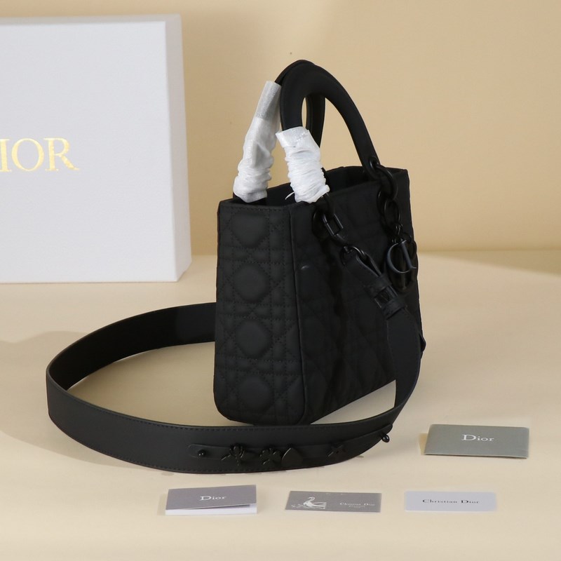 소형 레이디 디올 마이 ABCDior 핸드백 블랙 매트 가죽 라탄