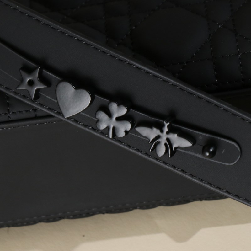 소형 레이디 디올 마이 ABCDior 핸드백 블랙 매트 가죽 라탄 패턴 네 칸 모래 마감 다이애나 백 블랙 이 레이디 디올 마이 ABCDior 핸드백은 디올의 우아함과 아름다움에 대한 깊은 통찰을 완벽히 담아냈습니다. 블랙 매트 가죽으로 정교하게 제작되었으며 라탄 격자무늬 스티치로 강조된 독특한 디테일이 특징입니다. 세련된 디자인은 시대를 초월한 클래식함을 선사합니다. 동일한 색상의 금속 d.i.o.r. 펜던트가 장식되어 정교한 실루엣에 생동감 있는 매력을 더합니다. 소형 사이즈로 디자인된 이 가방은 독특한 디자인과 조절 가능한 어깨 스트랩에 배지 장식을 추가해 개성을 강조할 수 있으며 손잡이로 들고 다니거나 어깨에 걸거나 크로스백으로 착용 가능합니다. 조절 가능한 넓은 어깨 스트랩에 3개의 배지가 포함되어 개성 있는 스타일을 연출할 수 있으며 총 6개의 배지로 장식 가능합니다. 내부 지퍼 포켓 다른 자수 스트랩과 자유롭게 조합 가능 방진 가방 포함 크기: 20 x 16.5 x 8 cm 모델 번호: M0538ONGE_M900