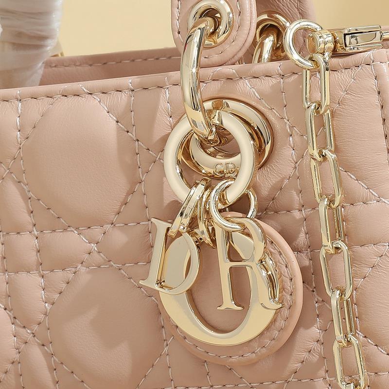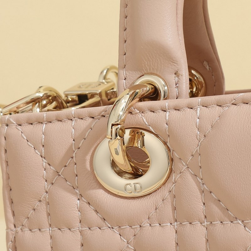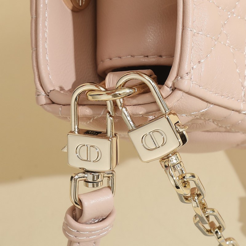 분홍색 양가죽 라탄 격자무늬 번호: S0910ONGE_M900 이 lady d-joy 핸드백은 lady dior 시리즈의 간결한 미학을 강조하며 dior가 우아함과 아름다움에 대한 깊은 통찰을 담아냈습니다. 핑크 양가죽으로 정교하게 제작되었으며 라탄 격자무늬 스티치 라인과 연금색 금속 d.i.o.r. 장식물이 조화를 이루어 고급스러운 분위기를 더했습니다. 소형 사이즈로 분리 가능한 체인 스트랩과 조절 및 분리 가능한 가죽 스트랩을 갖추어 손잡이로 들고 어깨에 걸거나 크로스백으로 착용할 수 있어 일상적인 스타일링에 완벽한 선택입니다. 분리 가능한 체인 스트랩은 분리 가능하며 조절 가능한 가죽 스트랩 내장형 먼지 방지 가방 크기: 16×9×5cm