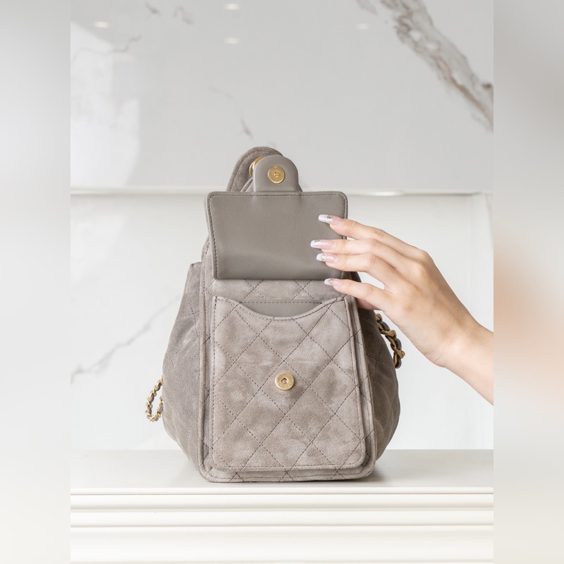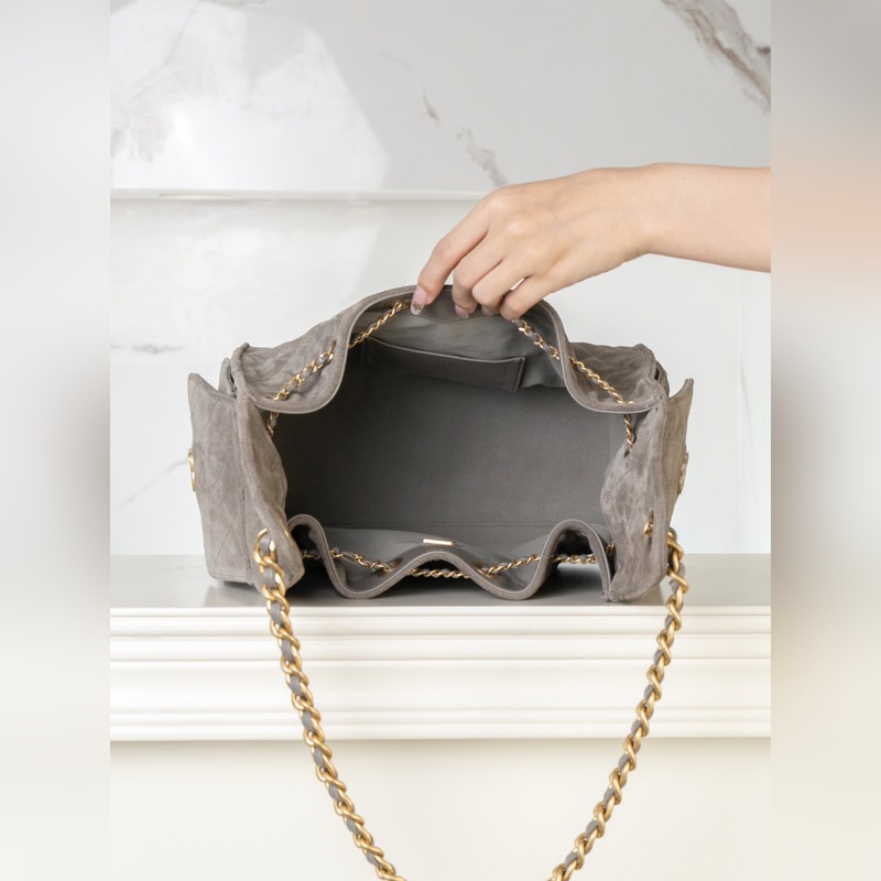 출고되었습니다! 《카젬색》 CHANEL 25A 버킷 스트링 백! 향가 시리즈에 새로운 귀여운 아이템이 추가되었습니다. 사슴 뿔 가죽 소재로 본체는 작은 버킷 백 형태이며 촉감이 부드러운 샌드블라스트 가죽입니다. 소프트하고 귀여운 미니 이어폰 케이스를 넣기 딱 좋은 사이즈로 의도적으로 세심하게 매치된 디자인입니다. 큰 더블 C 로고 디자인은 조절 가능합니다. 매력적인 작은 디테일 체인은 조절 불가 골드 장식과 조화로운 금속 부품은 복고풍의 오래된 금속 소재로 제작되어 빈티지한 분위기를 자아냅니다. 정말로 감탄스러운 디자인입니다. 모델 번호: 99921 크기: 31 x 15 x 41.5 cm