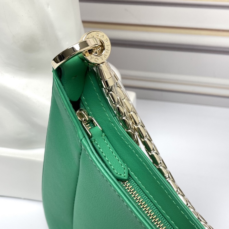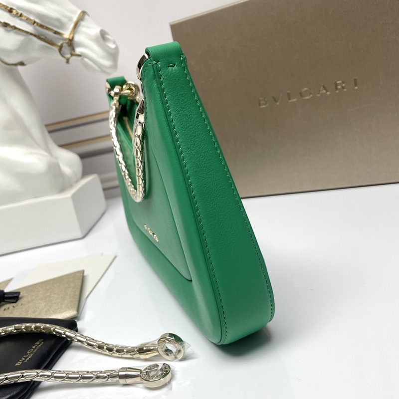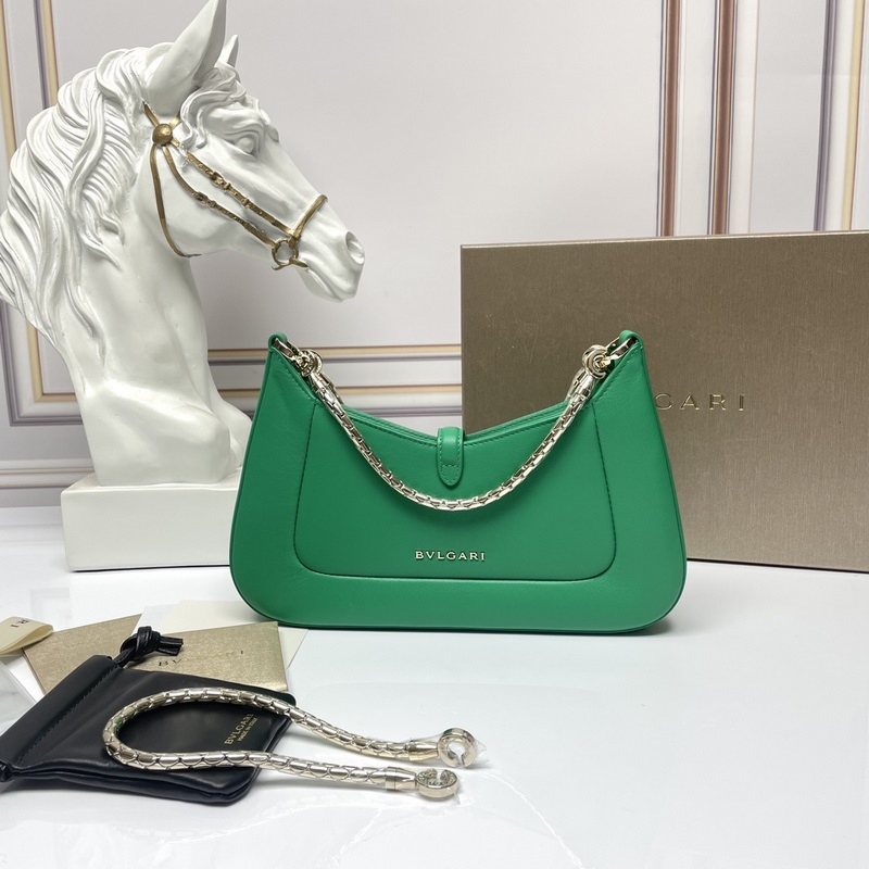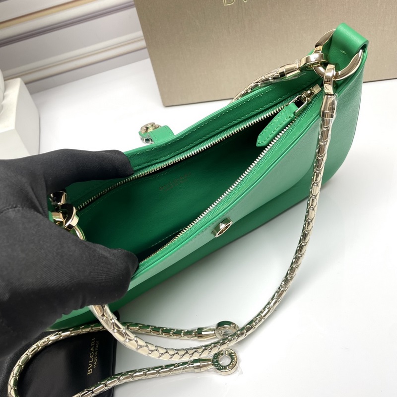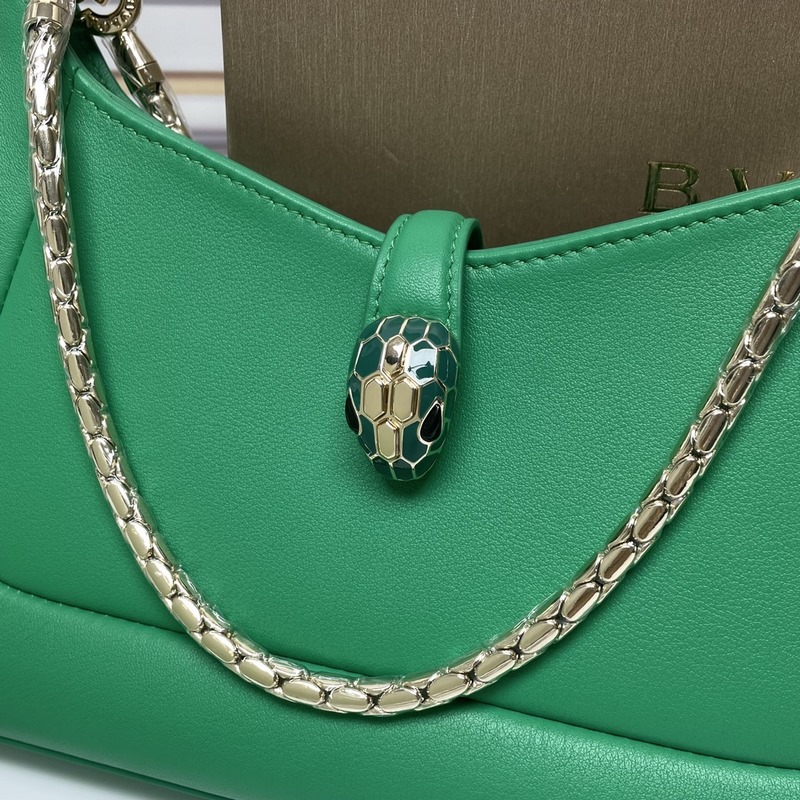 신형 칩 버전 BVLGARI SERPENTI BAIA 시리즈 소형 숄더백 부드럽고 내구성이 뛰어난 반짝이는 다이아몬드 그린 컬러의 도시형 소가죽 소재 시그니처 뱀 머리 자석 버튼으로 장식 매혹적인 비늘 디자인 단일 수납 공간 상단 지퍼 개폐식 내부 오픈 포켓 뒷면에 BULGARI 보그리 금속 로고 장식 2개의 탈착식 뱀 모양 두꺼운 체인과 추가 체인 장치가 포함되어 어깨 끈을 자유롭게 연장해 다양한 착용 방식이 가능합니다. 업그레이드된 골드 리본 박스 포함 사이즈: 27.5×18×4.5cm 293208
