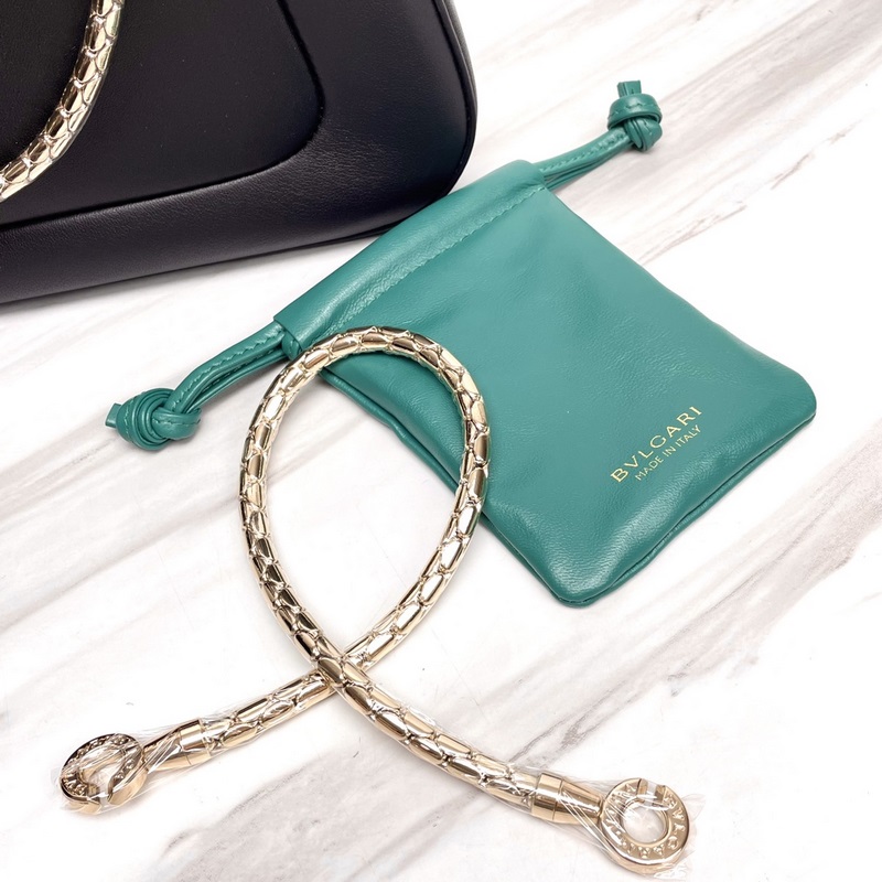 SERPENTI BAIA 시리즈 ? 디자인이 돋보이는 겨드랑이 가방으로 두 개의 분리 가능한 뱀 모양의 두꺼운 체인과 추가 체인 장치가 포함되어 있습니다. 어깨 끈을 자유롭게 연장하여 다양한 착용 방식이 가능합니다. 양가죽 소형 포켓과 우산이 포함되어 있습니다. 크기: 27.5x18 x3.5cm 모델 번호: 293208