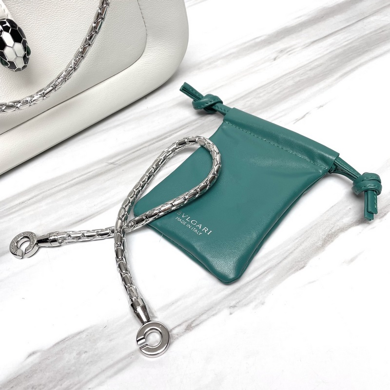 SERPENTI BAIA 시리즈 ? 디자인이 돋보이는 겨드랑이 가방으로 두 개의 분리 가능한 뱀 모양의 두꺼운 체인과 추가 체인 장치가 포함되어 있습니다. 어깨 끈을 자유롭게 연장하여 다양한 착용 방식이 가능합니다. 양가죽 소형 포켓과 우산이 포함되어 있습니다. 크기: 27.5x18 x3.5cm 모델 번호: 293208