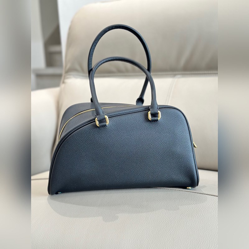 최고급 B 브랜드의 최신 볼링 가방으로 입체적인 무늬가 돋보이는 소가죽 소재로 제작되었습니다. 이탈리아 공방에서 정교하게 제작되었으며 부드럽고 탄력 있는 소가죽 반가죽 내장으로 마감되었습니다. 브랜드의 마술 기수 로고(EKD) 요소를 반영해 방패 모양 금속 액세서리 및 걸이 고리를 갖추었으며 D형 고리 디자인으로 액세서리를 걸 수 있습니다. 크기 32 × 12.5 × 19.5cm. 모델 번호 8291