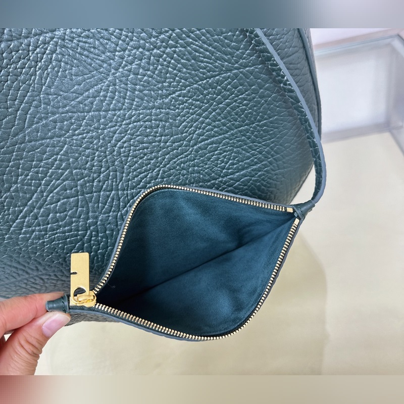 최고급 【Daniel Lee 신제품】 체스 숄더 백 조절 가능한 가죽 어깨 끈 개방형 가방 입구 디자인 자석 버튼 개폐식 분리 가능한 지퍼 수납 주머니 수작업으로 칠해진 가장자리 브러시드 메탈 액세서리 수납 주머니에 Bur 로고 음각 장식 크기 30x9×33cm 모델 번호 5781