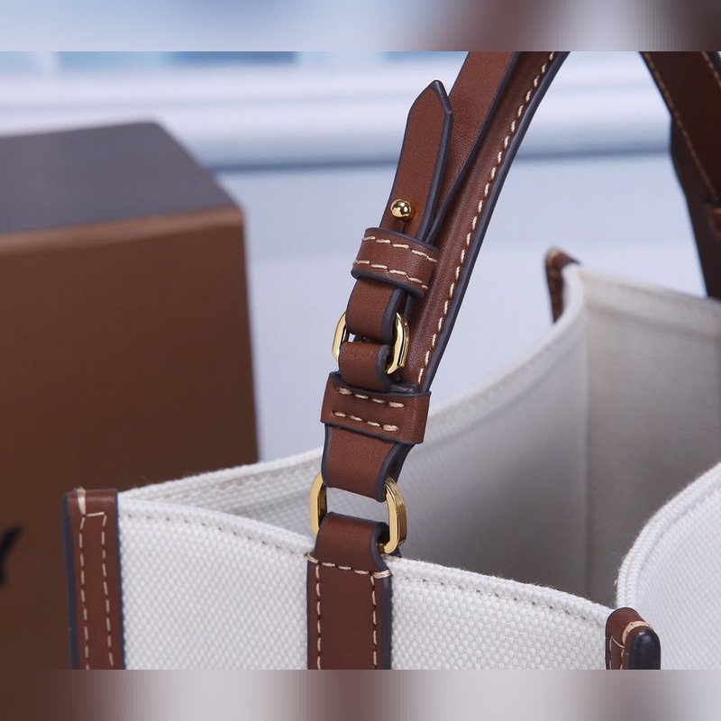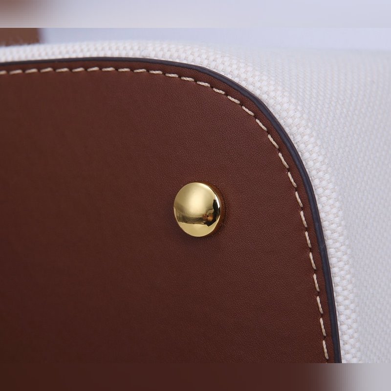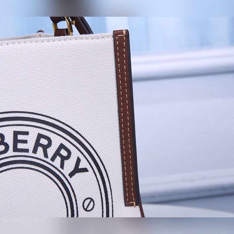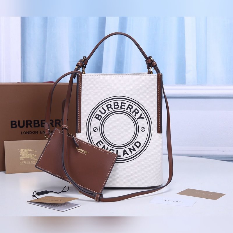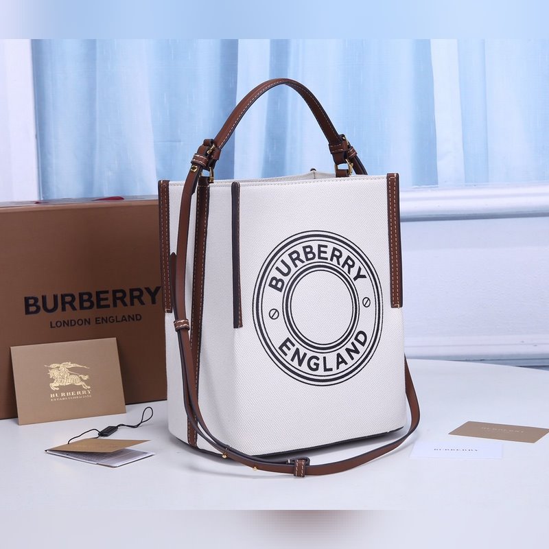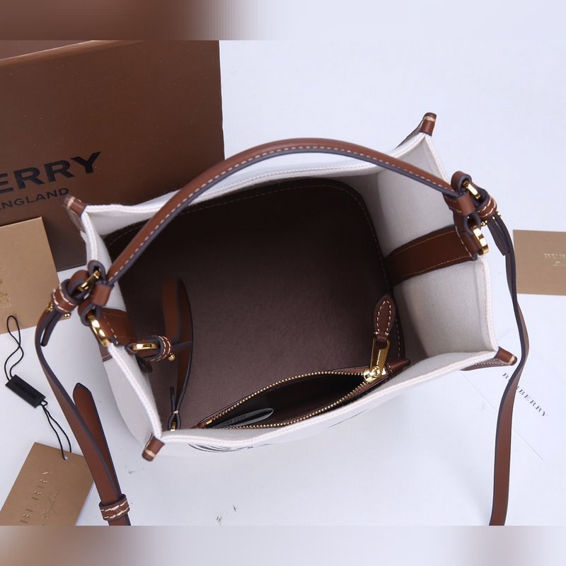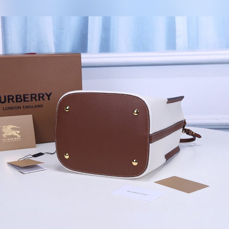 버버리 승마 스타일 코튼 캔버스 버킷 백 모델: 9491 대조적인 가죽
