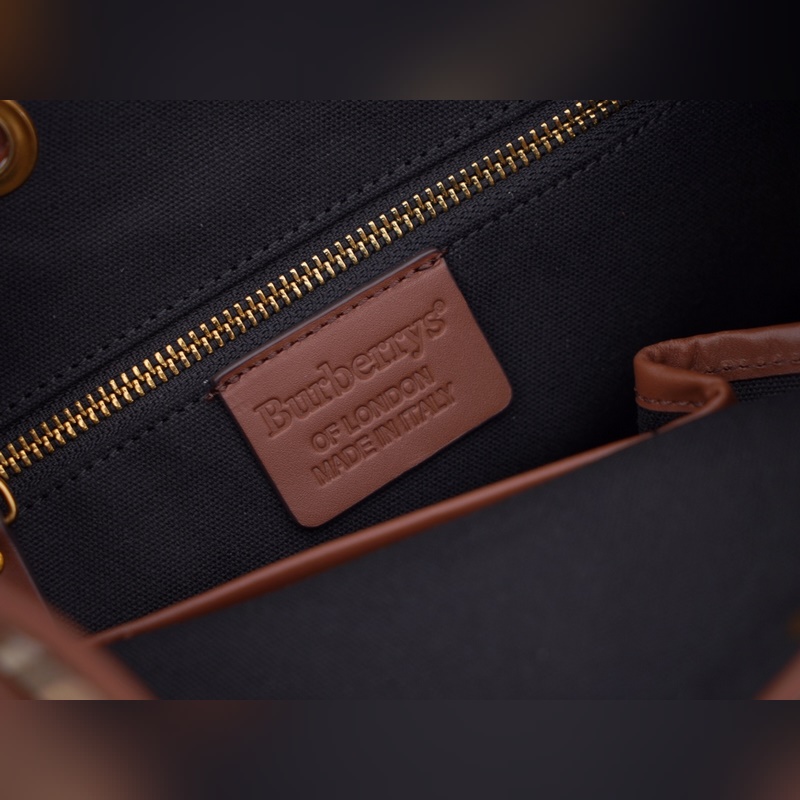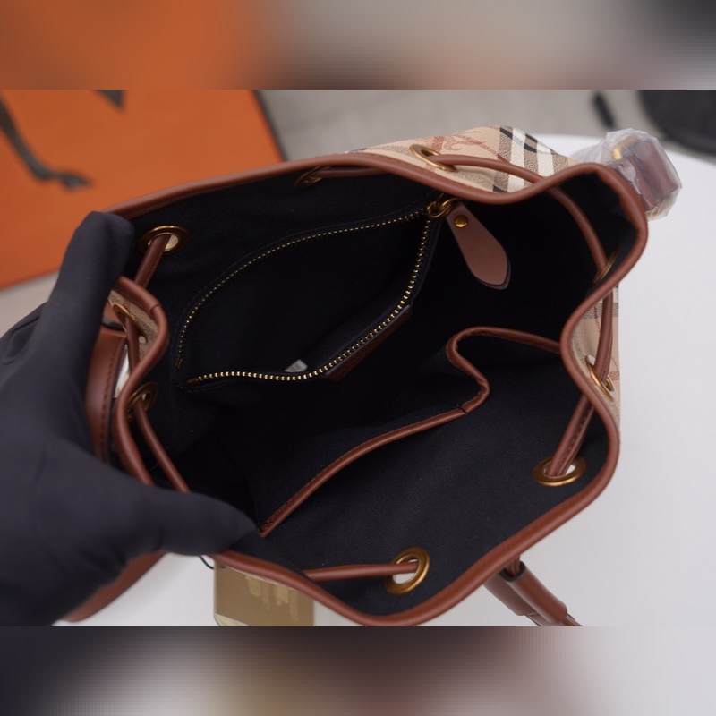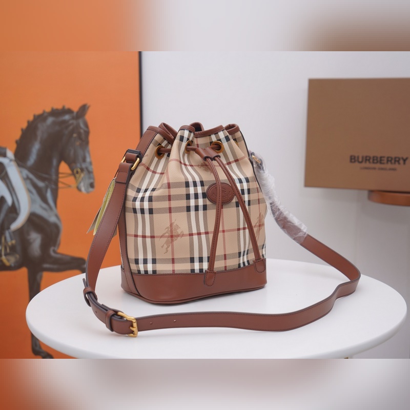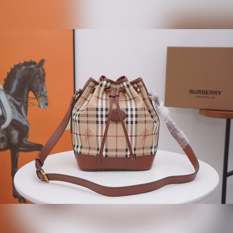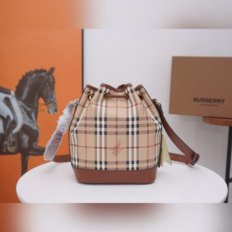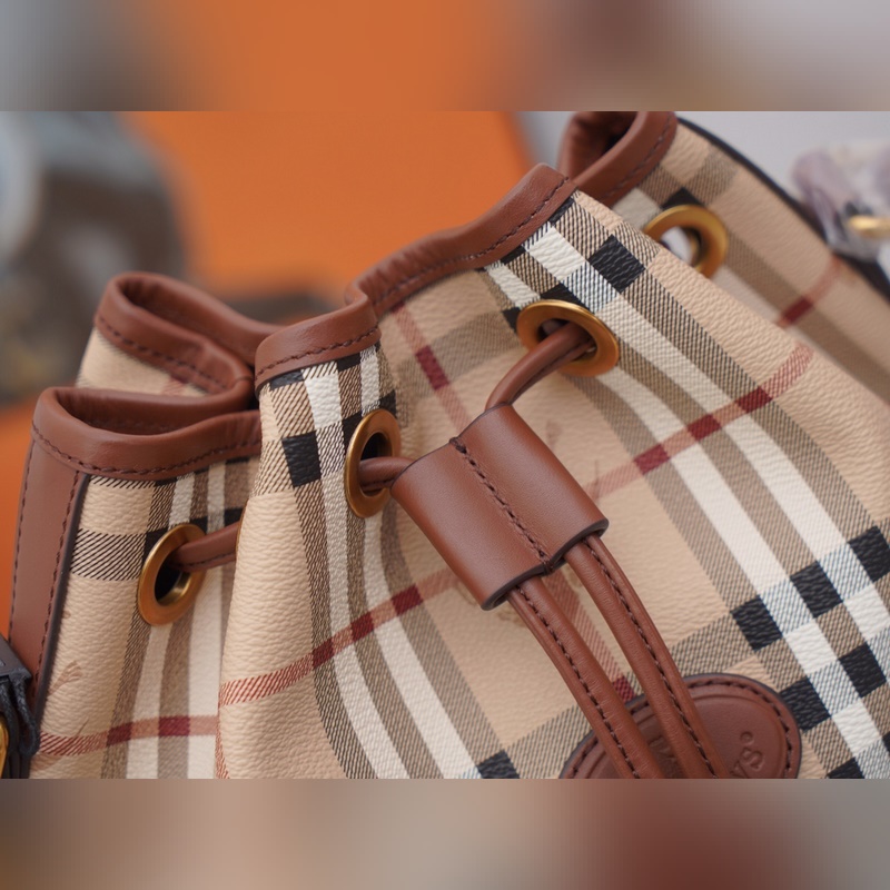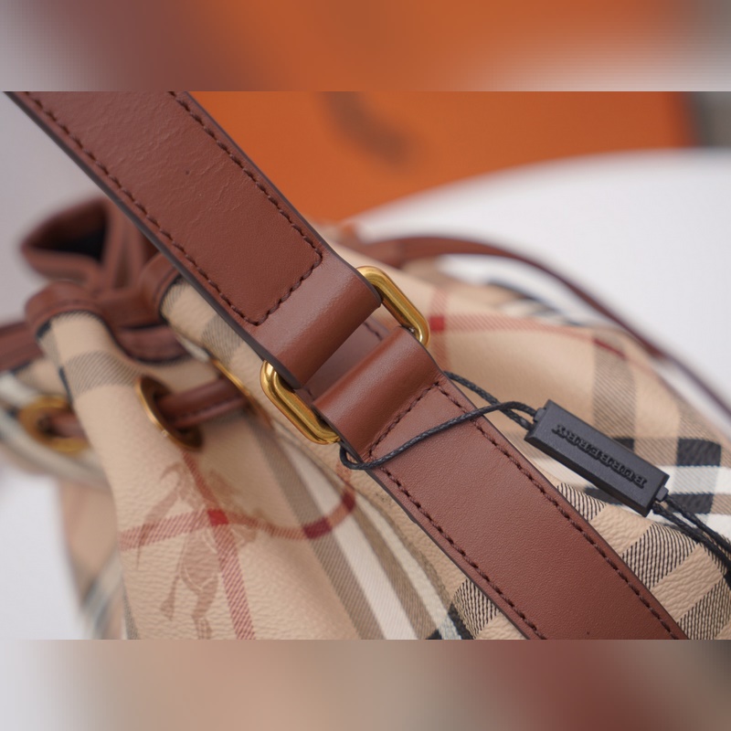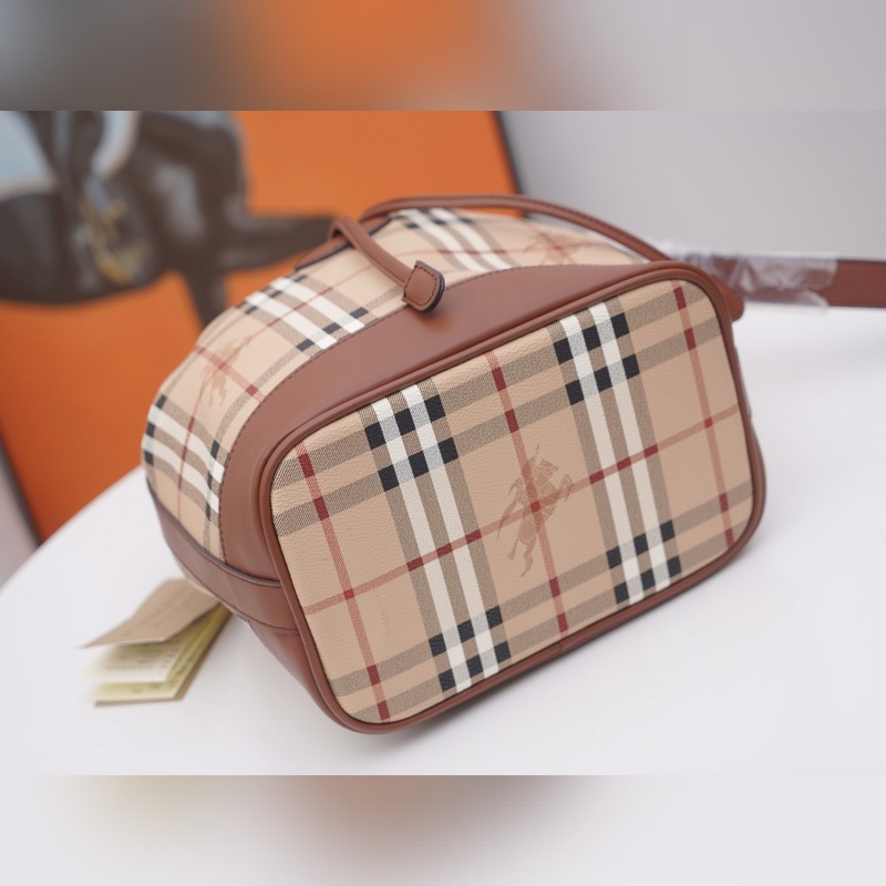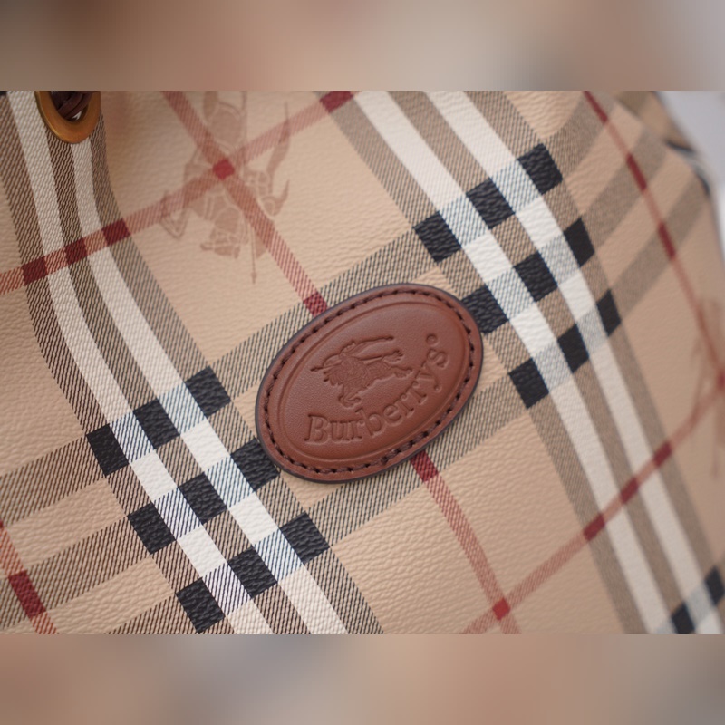 버버리 버버리 빈티지 말 버킷백 수입 말 체크무늬 PVC와 가죽 부분