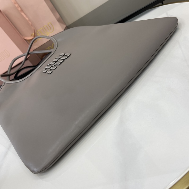 [신규] Miu 여성용 IVY 소가죽 토트 숄더백 이 클래식한 토트백은 미우미우 모노그램 로고로 장식되어 있어 매우 눈에 띄는 클래식한 스타일을 연출합니다. 모노크롬 가죽 모노그램 로고가 있는 심플한 언더암 토트백으로 독특한 클래식 스타일을 더해줍니다! 금색 하드웨어와 앞면에 가죽 모노그램 로고! 지퍼가 달린 안감! 모델: 5BG231. 크기: 34(가로) x 40(세로) 색상: 그레이 풀 레더/오리지널 레더. 이탈리아어 창조