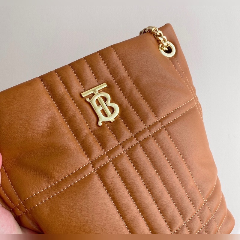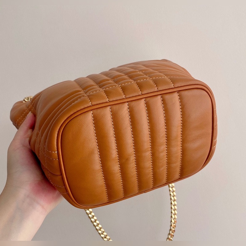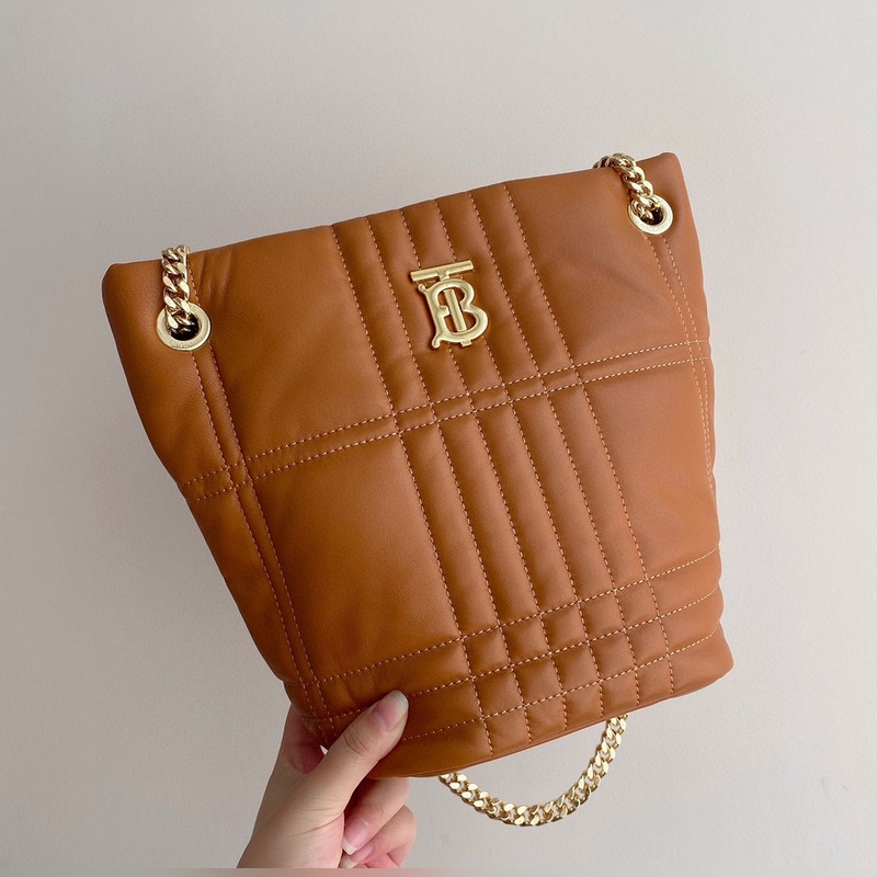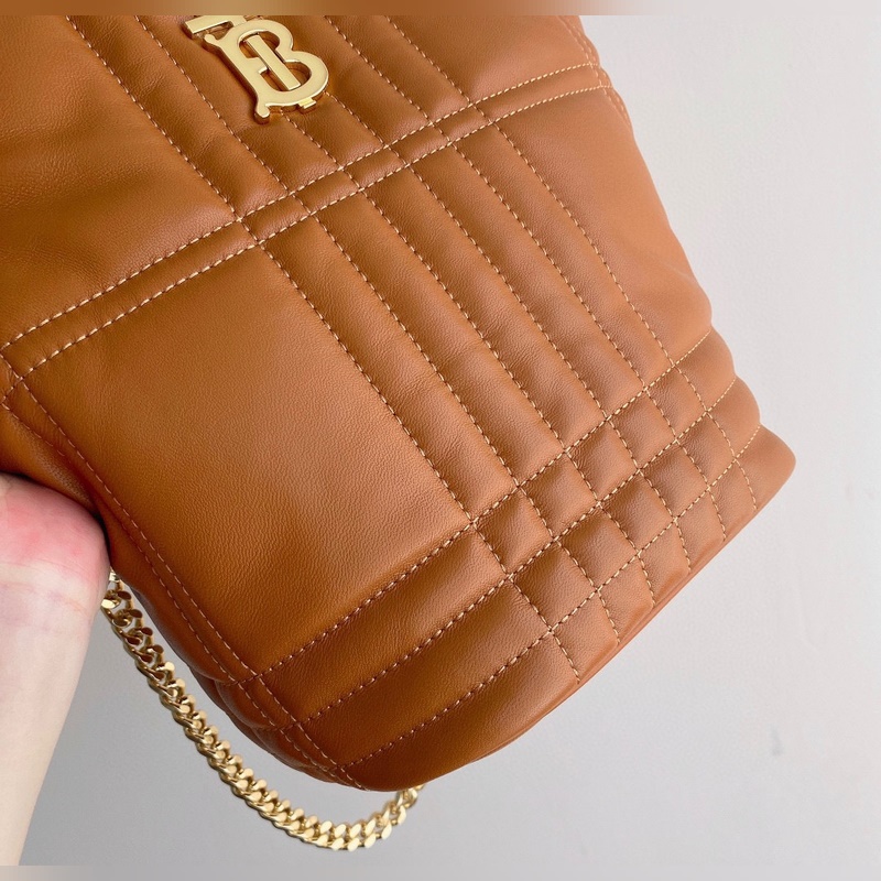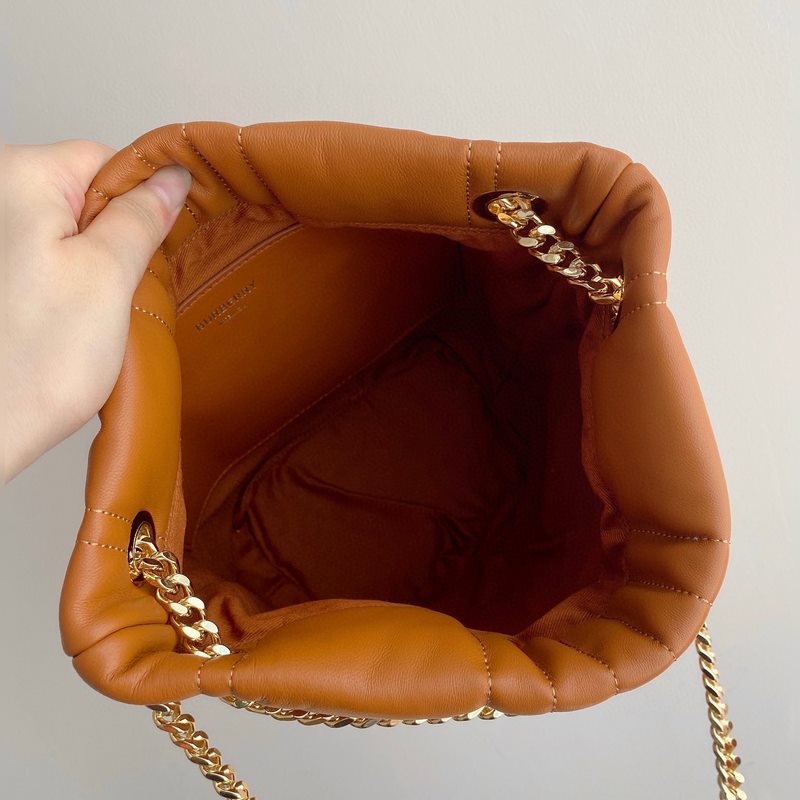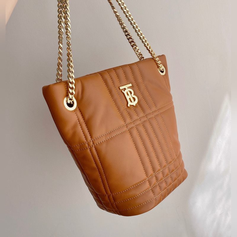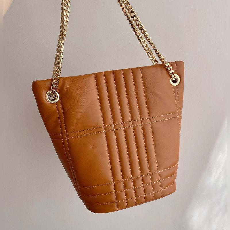 버버리 [작게] 최신 컴팩트 퀼팅 롤라 버킷 백 엄선된 부드러운 양가죽으로 제작되었으며 아름다운 올-쿠퍼 체인 숄더 스트랩이 특징입니다. 앞면에 T-B 로고가 장식되어 있으며 어깨에 메거나 몸에 걸칠 수 있습니다. 어떤 스타일로 착용하든 멋지게 보입니다. 크기: 30×12.5×27cm 아이템 번호: YK96181150