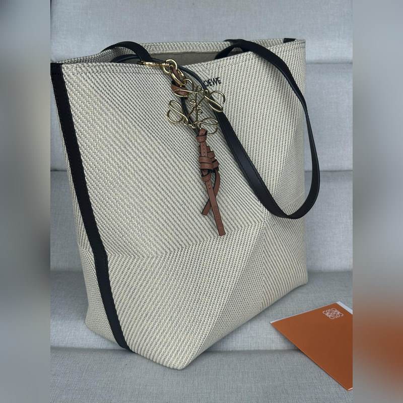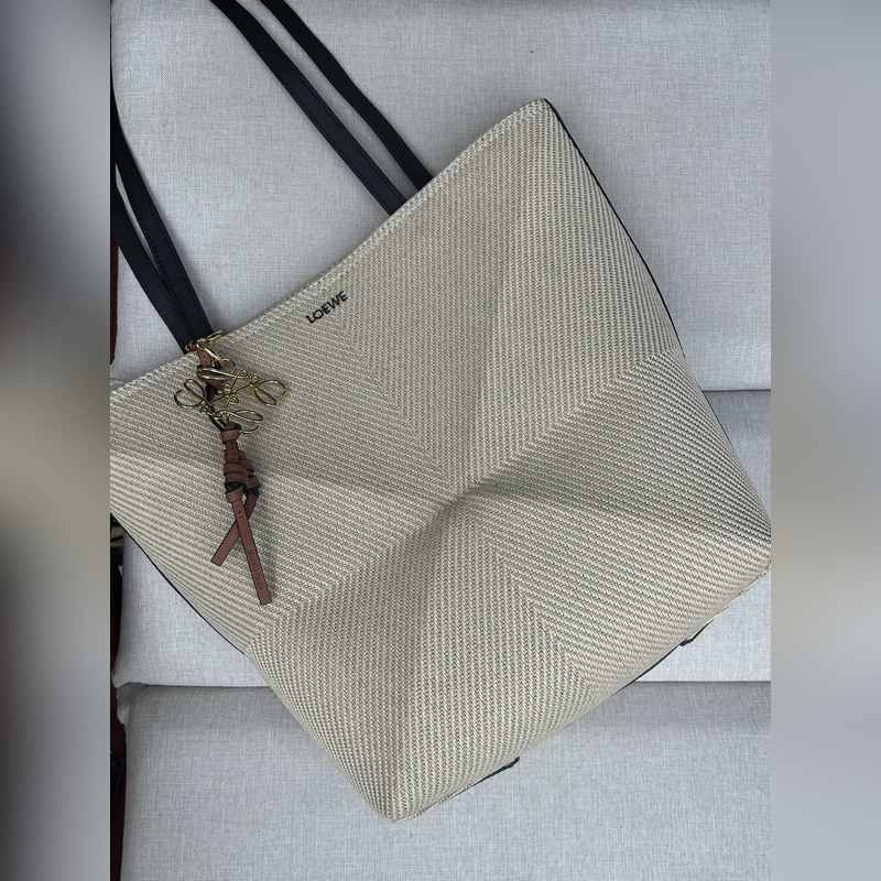 천연 가죽 코튼 자카드 퍼즐 폴드 백(매칭되는 참과 함께 매치 가능) 린넨 천연/천연 1762A 면 퍼즐 폴드 백은 브랜드의 클래식 핸드백 컬렉션의 기하학적 라인에서 영감을 얻어 기하학적 건축의 아름다움으로 재해석되었습니다. 완전히 접을 수 있어 여행 시 휴대하기 좋습니다. 이 브랜드는 창의적인 독창성을 발휘하여 절제되고 우아한 LOEWE 로고가 있는 부드럽고 가벼운 핸드백을 만들었습니다. 이 버전은 면 자카드로 만들어졌습니다. 어깨에 메거나 손으로 들 수 있습니다. 합성 피혁 안감 LOEWE 자수 215.5-31cm