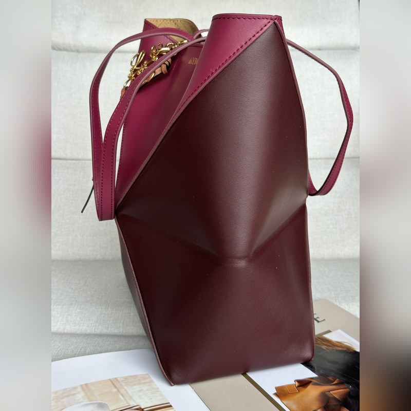 천연 가죽 소형 퍼즐 토트백 25.5-14.5-31.5 모델 1762 반짝이는 소가죽 퍼즐 폴드 퍼즐 폴드 퍼즐 폴드 백은 브랜드의 클래식 핸드백 컬렉션의 기하학적 라인에서 영감을 얻어 기하학적 건축의 아름다움으로 재해석되었습니다. 완전히 접을 수 있어 여행 시 휴대하기 좋습니다. 이 브랜드는 창의적인 독창성을 발휘하여 부드럽고 가벼우면서도 절제되고 우아한 LOEWE 로고가 있는 핸드백을 만들었습니다. 스웨이드 안감 LOEWE 핫 스탬핑