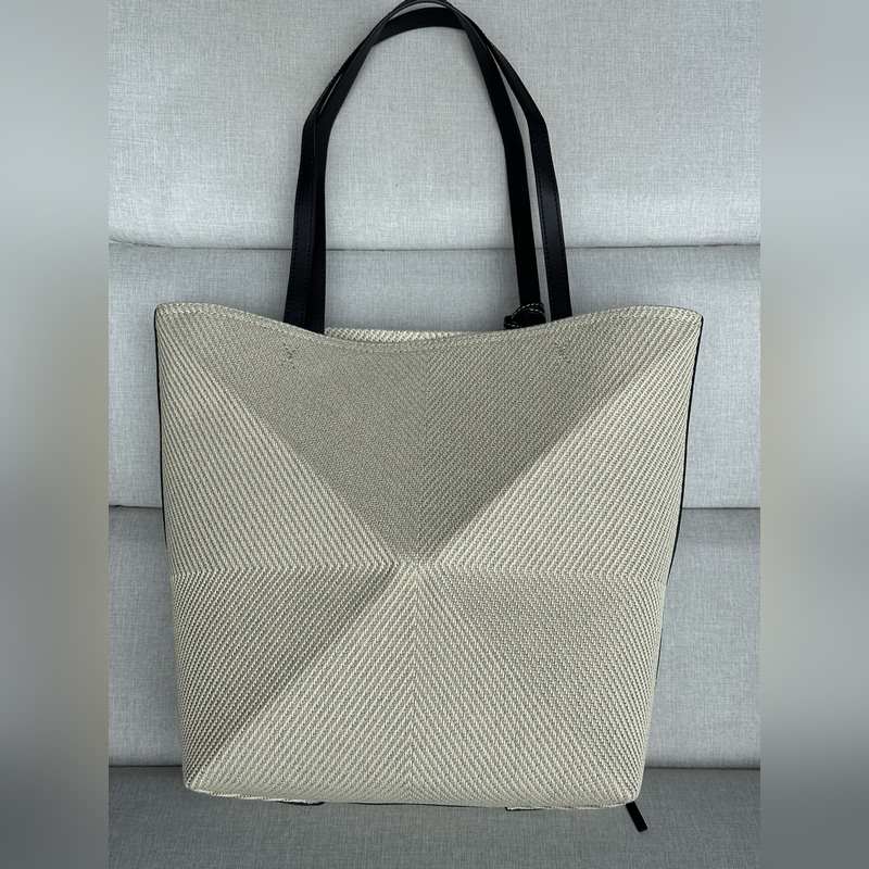 오리지널 가죽 코튼 자카드 퍼즐 폴드 백 린넨 천연/천연 1762b 면 퍼즐 폴드 백은 브랜드의 클래식 핸드백 컬렉션의 기하학적 라인에서 영감을 얻어 기하학적 건축의 아름다움으로 재해석되었습니다. 완전히 접을 수 있어 여행 시 휴대하기 좋습니다. 이 브랜드는 창의적인 독창성을 발휘하여 절제되고 우아한 LOEWE 로고가 있는 부드럽고 가벼운 핸드백을 만들었습니다. 이 버전은 면 자카드 소재로 만들어졌습니다. 어깨에 메거나 손으로 들 수 있습니다. 합성 피혁 안감 LOEWE 자수 215.5-31cm