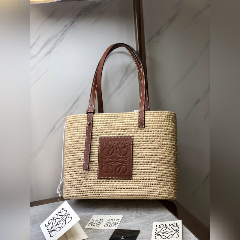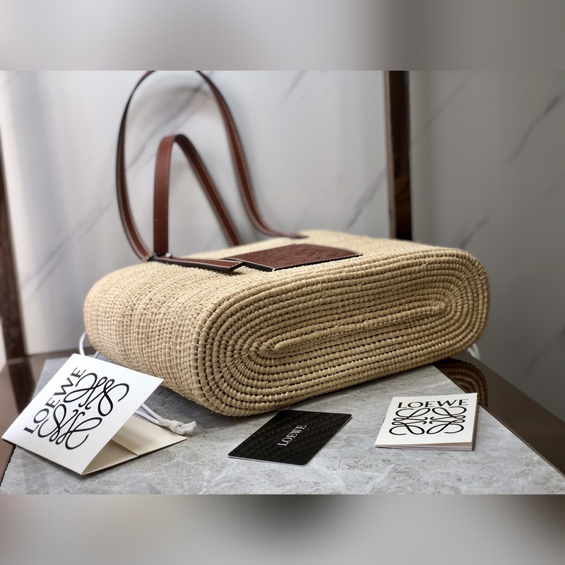 오리지널 가죽 로우 뉴 라피아와 송아지 가죽으로 만든 이 컴팩트한 사각 바구니 가방은 라피아와 송아지 가죽으로 만들어졌습니다. 가방의 외부는 조절 가능한 송아지 가죽 스트랩과 송아지 가죽 아나그램 패치로 마감되어 있습니다. 수작업으로 제작되었기 때문에 색상이 약간 다를 수 있습니다. 어깨에 메거나 손잡이 위를 잡음 조절식 가죽 스트랩 자연스러운 느낌을 위해 안감 없음 맞춤형 어깨 스트랩과 개인화된 매력 LOEWE 아나그램 패치 크기: 28×20×10cm